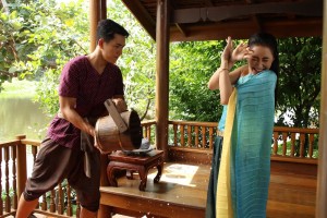 เบื้องหลังฉากนี้ ทีมงานยกกองไปถ่ายทำกันถึงเรือนไทยสายน้ำจามจุรี จังหวัดปทุมธานี เรียกว่าเป็นอีกหนึ่งฉากสำคัญที่คนดูจะได้ลุ้นถึงเรื่องราวความรักของ กอล์ฟ และยีน ที่ผ่านเรื่องราวต่าง ๆ มามากมาย แต่มีอีกสิ่งหนึ่งที่ยังคงเป็นปมค้างคาใจของนางเอกยีนนั่นคือ ตัวตนที่แท้จริงของตัวเองที่ตนเป็นเงือก งานนี้ เรียกว่าทั้งคู่ ต้องเปียกปอนกันอีกแล้ว แถมสาวยีนก็ต้องใส่ชุดเงือกอีก บอกเลยว่าซีนนี้ ยาว ๆ ไปจ้า ถึงเวลาตอนซ้อม ผู้กำกับ วิชิต วัฒนานนท์ เรียกทั้งกอล์ฟและยีนมาซักซ้อมคิวต่อบท เพราะนอกจากบทที่ยาวแล้ว แอคชั่นก็เยอะมาก เพราะทั้งคู่ต้องสาดน้ำใส่กัน แถมยังต้องลงไปแช่น้ำกันอีก บวกกับซีนนี้เรียกว่าเป็นอีกซีนที่ หวานโรแมนติกชวนลุ้น เพราะทั้งคู่ต้องจุ๊บกันอีกแล้ว บอกเลยว่า ถึงครบรสจบในหนึ่งซีนแน่นอน แต่คนที่รับบทหนักเห็นจะเป็นสาวยีน เพราะว่าต้องถ่ายทำกันหลายคัทเปลี่ยนชุดกันหลายรอบ เพราะนอกจากจะมีชุดไทยแล้ว ยังต้องเปลี่ยนเป็นชุดเงือกอีก ทำเปียกทำแห้งสลับกันไปแบบเพลิน ๆ ทำเอาหนุ่มกอล์ฟที่ดูจะชิวที่สุด ก็ทำได้แค่ชูสองนิ้ว ให้กำลังใจน้องสาว สู้ ๆ นะจ๊ะ อิอิ หลังจากนัดแนะคิวจนเป๊ะ ถ่ายจริงเริ่มที่กอล์ฟหลอกยีนมาที่ท่าน้ำ ในจังหวะยีนเผลอกอล์ฟเอาน้ำมาสาดยีน แถมเพื่อคววามชัวเลยกอดยีนตกน้ำไปพร้อมๆกัน งานนี้ขุนนเรนจะรู้ความลับนี้หรือไม่ ตามลุ้นกันต่อได้ในละคร มัจฉาอันดา วันอังคารที่ 8 กุมภาพันธ์ 2565 เวลา 19.00 น. ทางช่อง8 กดเลข27