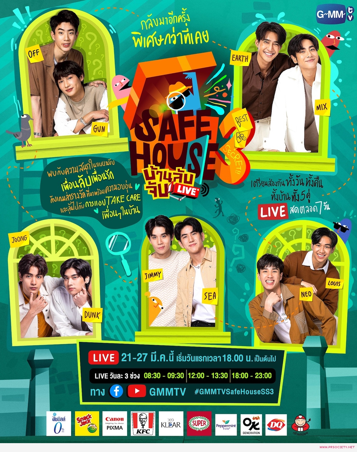 ติดตามความสนุกและความอบอุ่นฟินขั้นสุดของหนุ่มๆ สุดฮอต GMMTV ได้ในรายการ “SAFE HOUSE บ้านลับ จับ LIVE” ซีซั่น 3 โดย LIVE สด ตลอด 7 วัน ตั้งแต่วันที่ 21-27 มีนาคมนี้ ทางFacebook และ YouTube GMMTV และอัพเดททุกความเคลื่อนไหวได้ที่ FB & IG & YouTube & Twitter : GMMTV