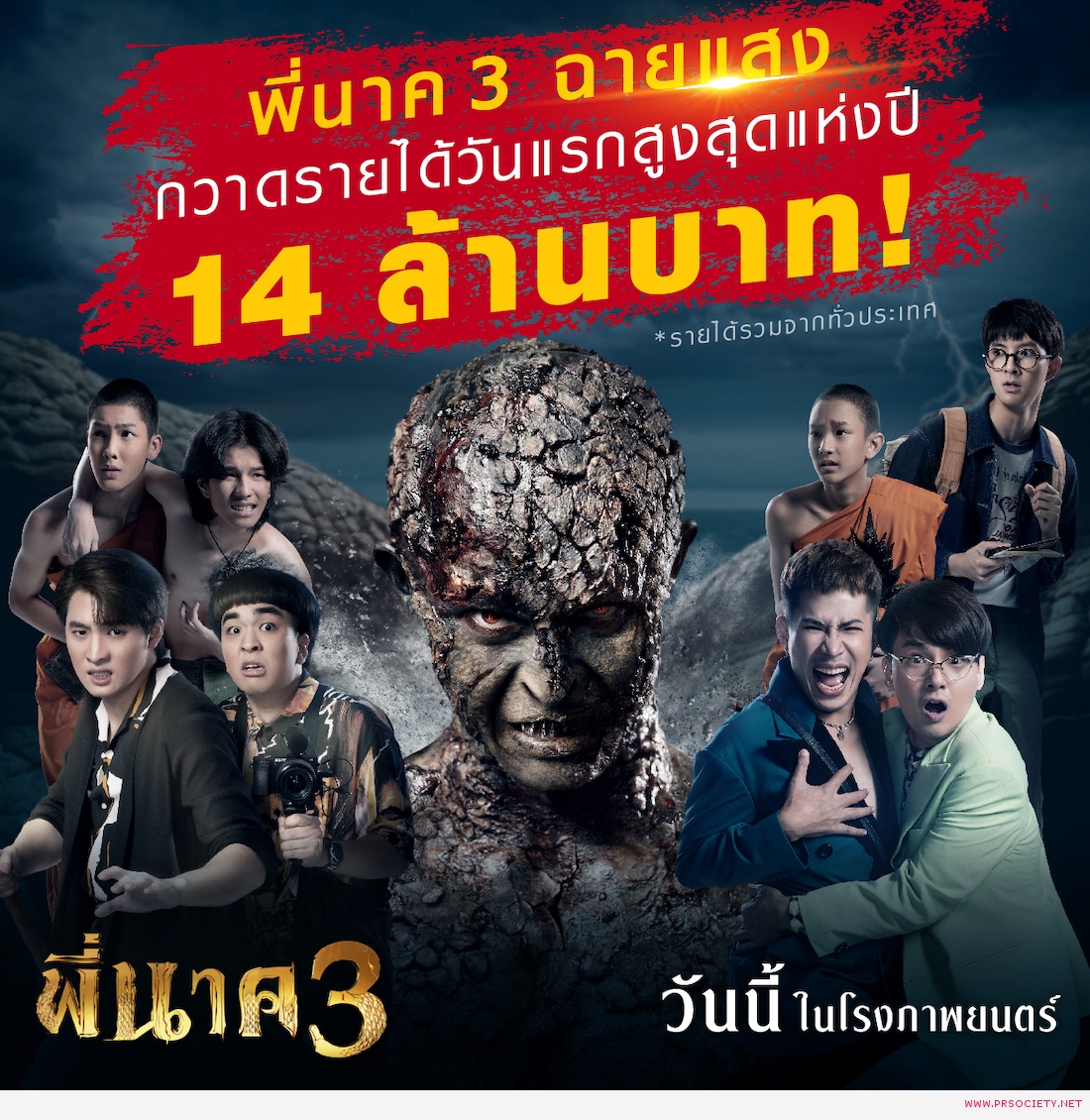 “พี่นาค 3” ต๊าช…ที่สุดกันไปเลย กลายเป็นภาพยนตร์ไทยที่มาแรงสุดในขณะนี้ที่เปิดตัววันแรกแรงขึ้นแท่นอันดับ 1ทั้งที่ ประเทศไทย และ สปป.ลาว โดยที่ประเทศไทยกวาดรายได้ทั่วประเทศฉายวันแรกฟาดเรียบไปถึง 14 ล้าน ทำให้ “พี่นาค 3” ถือเป็นภาพยนตร์ที่มีกระแสแรงอย่างต่อเนื่องที่ถูกพูดถึงว่า…เฮี้ยนสุด ฮาสุด ฉายแสงที่สุด สร้างปรากฏการณ์ภาพยนตร์ไทยที่ทำรายได้วันแรกสูงสุดแห่งปีไปแล้วจ้าา สามารถเช็ครอบเช็คที่นั่งจองตั๋วได้ทุกโรงภาพยนตร์ทั่วประเทศ SF https://bit.ly/3IjeF2n , MAJOR https://bit.ly/3ib5wyq