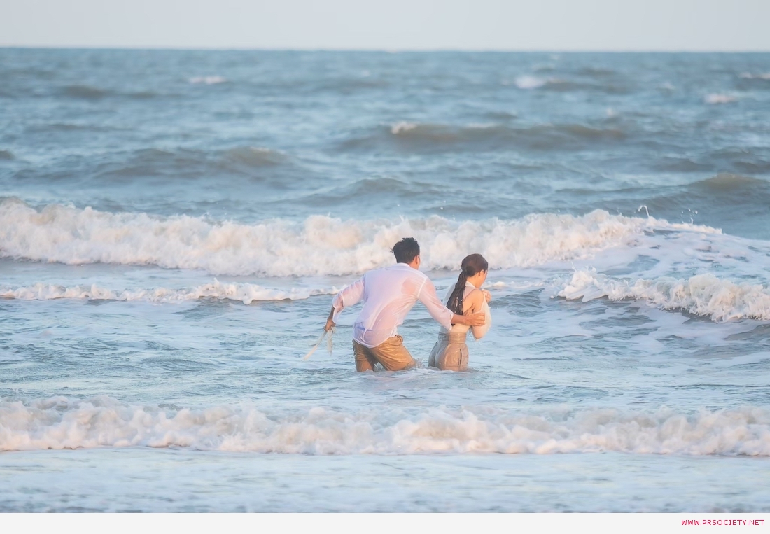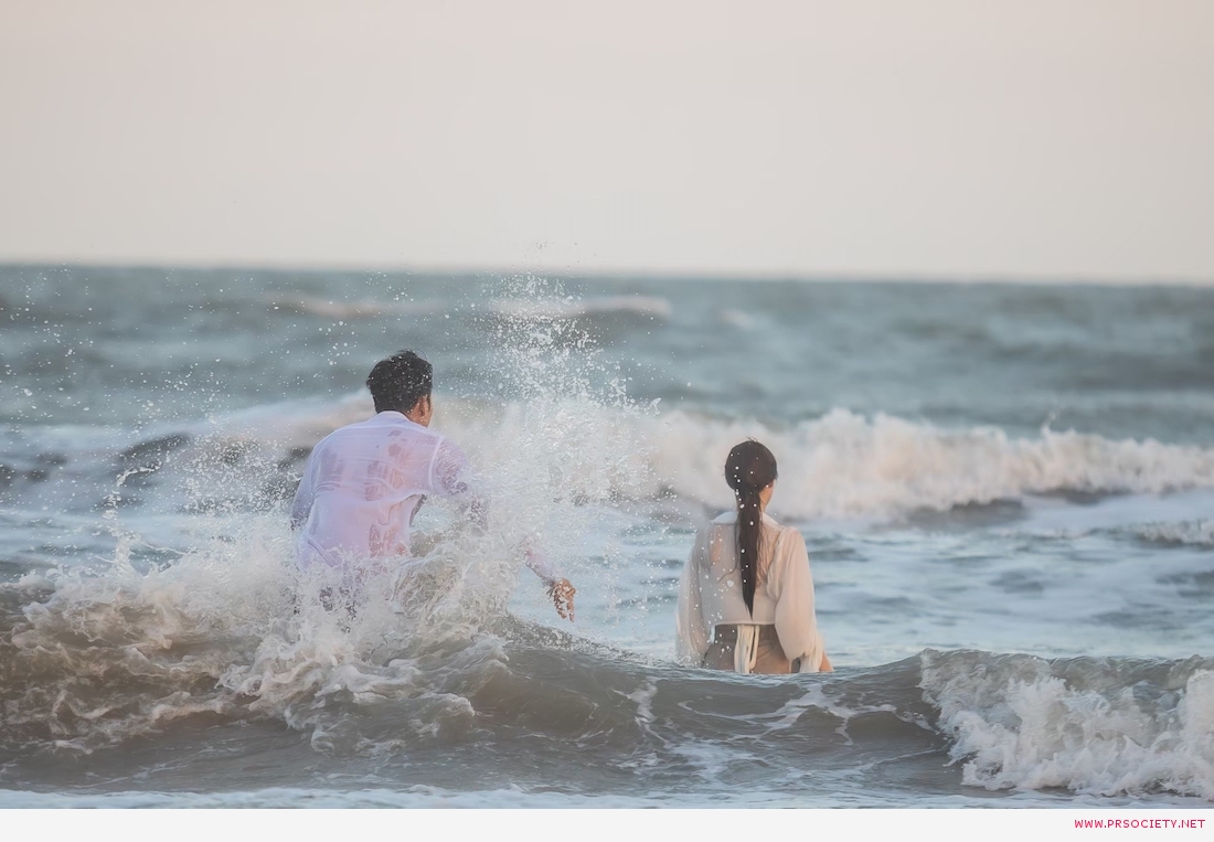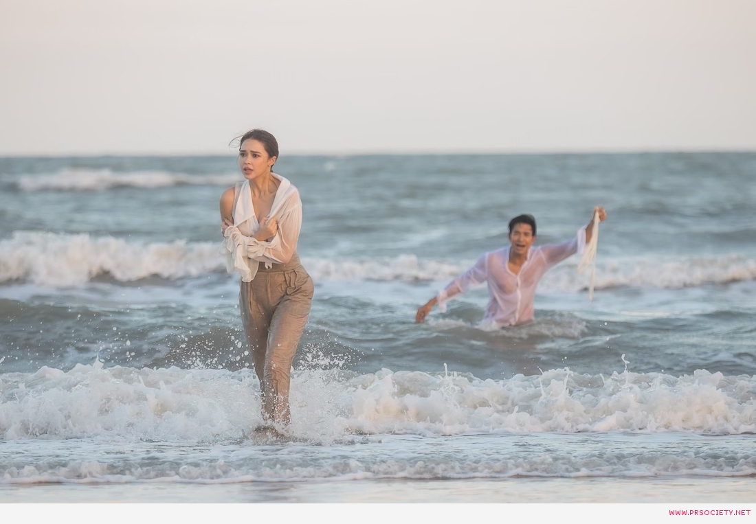 ฉากนี้ถ่ายทำกันที่หาดทรายสวยๆแถวปึกเตียน เพชรบุรี เป็นวันที่แดดดี ลมแรงมาก หาดกว้างมาก เริ่มต้น แพทริเซีย ต้องเดินลุยน้ำทะเลอยู่หลายรอบ เดินกันยาวๆตั้งแต่บนผั่งจนถึงตัวเปียกไปครึ่งตัว แพทเดินอยู่หลายรอบมาก เพื่อให้ตากล้องเก็บมุมภาพสวยงามหลายๆมุม ขณะที่เกรท ก็วิ่งตั้งแต่บนบ้านจนถึงชายหาด วิ่งกันจนเหนื่อยหอบ เหงื่อท่วมตัวเลยทีเดียว ก่อนจะไปฉุดกระชากลากถูกแพทริเซียขึ้นมาจากน้ำ รวมทั้งจังหวะดึงเสื้อสวยๆขาดด้วย ฉากนี้เป็นฉากน่ารัก โดยเฉพาะตอนที่เกรท ต้องถอดเสื้อโชว์หุ่น เพื่อแสดงความเป็นสุภาพบุรุษ สละเสื้อให้สาวสวย ฉากนี้เกรทมีเขินนิดหน่อย เพราะรู้สึกหุ่นค่อนข้างอวบ ยังฟิตไม่เฟิมเต็มที่ แต่สาวแพทให้กำลังใจว่าหุ่นดีแล้ว เกรทเลยยอมโชว์หุ่นบึ้กๆเต็มที่ หล่อจริงจ้า