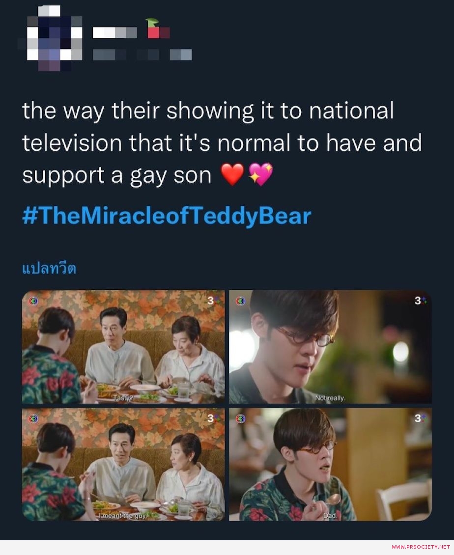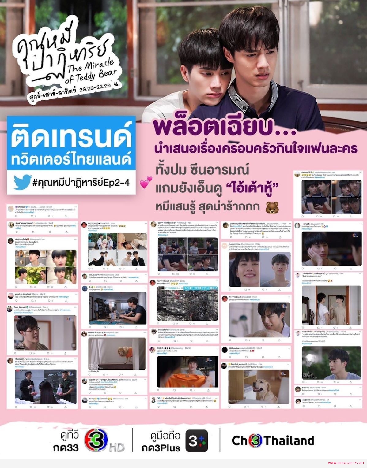 ปาฏิหาริย์เกิดแค่เปิดดู สำหรับละครดีช่อง 3 “คุณหมีปาฏิหาริย์” (The Miracle of Teddy Bear) เพราะเกิดกระแสชื่นชมในหลากหลายประเด็น นอกจากเคมีพระเอกนายเอก“อิน สาริน” กับ “จ๊อบ ธัชพล” ที่ชวนดูแล้ว ยังมีพล็อตเรื่องที่ดีปลุกความเข้าใจในครอบครัวเกี่ยวกับเรื่อง LGBTQ+ ได้แบบกินใจ มีปมปัญหาดราม่าในครอบครัวให้ได้ลุ้นหลายปมทำเอาคนดูอินตามไม่ไหว แถมแต่ละประโยคยังทัชใจใครหลายคนอีกด้วย ทำให้หลายครอบครัวที่เปิดใจชมละคร “คุณหมีปาฏิหาริย์” (The Miracle of Teddy Bear) หันมาปลื้มปริ่มมากขึ้นกว่าเดิม พร้อมสร้างบรรยากาศให้ครอบครัวได้มานั่งชมสนุกไปกับละครเรื่องนี้ด้วยกันอย่างอบอุ่น ส่งผลให้เรื่องนี้คว้าใจแฟน ๆ ผู้ใหญ่ วัยรุ่น ทั้งในประเทศไทยและต่างประเทศได้อย่างเหนียวแน่น จนทำให้ #คุณหมีฯ ครองเทรนด์ทวิตเตอร์ไทยแลนด์ทุกตอน
