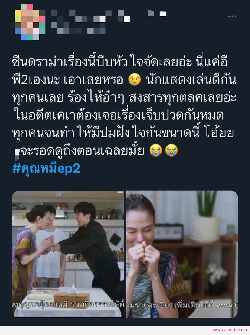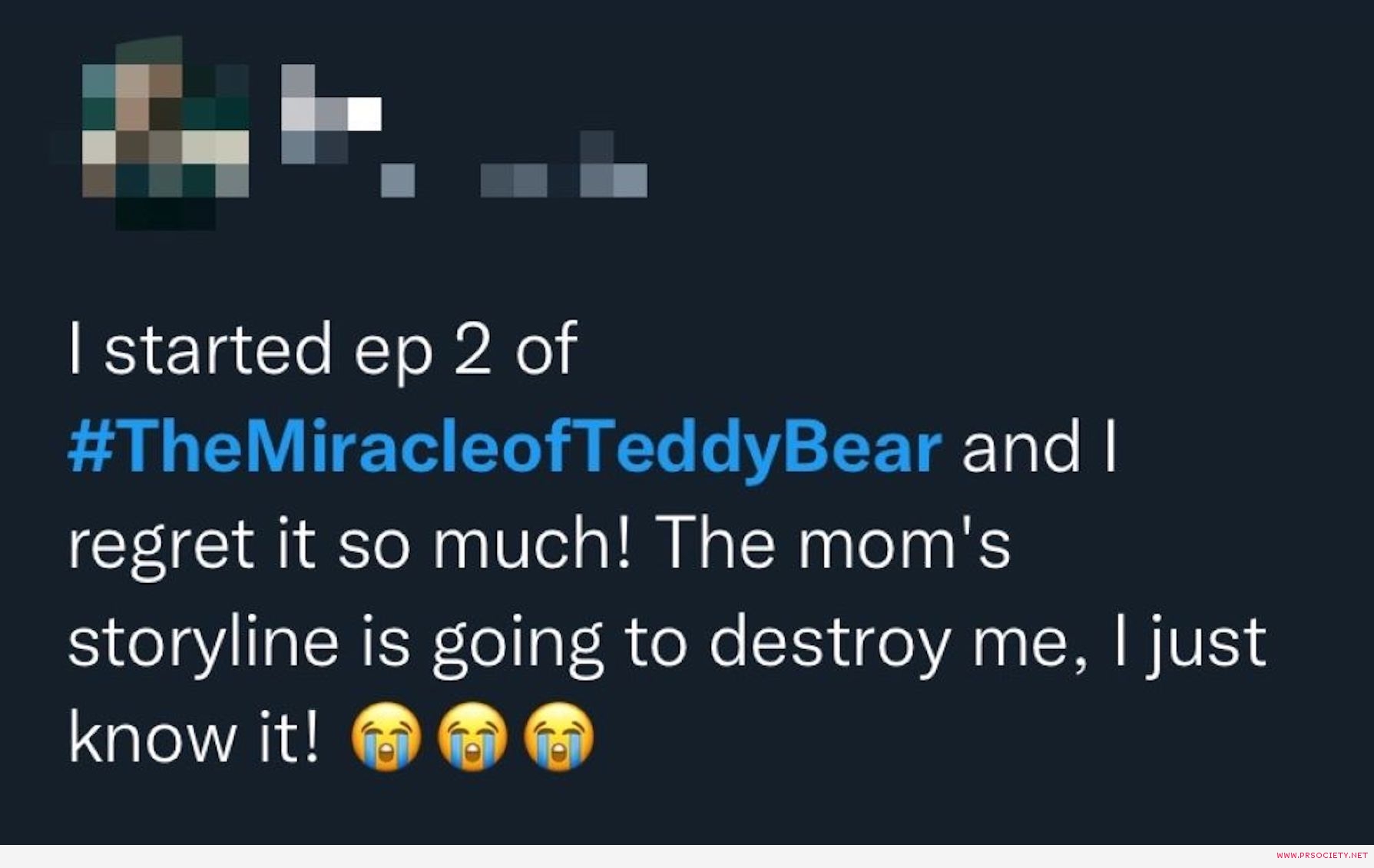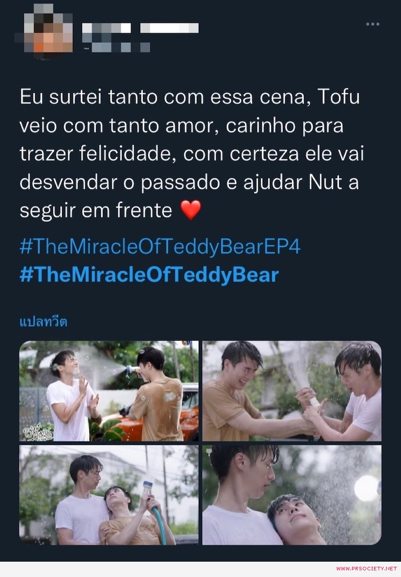 โดย 3 ตอนล่าสุด Ep.2 – Ep.4 ได้ทำเอาแฟน ๆ บีบหัวใจน้ำตาท่วมจอไปกับปมอดีตสุดดราม่าของครอบครัวแม่ “มทนา” (อุ๋ม อาภาศิริ) กับ “พีรณัฐ” (จ๊อบ ธัชพล) งานนี้เลยส่งผลให้หนุ่ม “จ๊อบ”รวมไปถึงนักแสดงทุกคนที่สาดพลังการแสดงซีนดราม่าได้รับคำชมไปเต็ม ๆ และยังทำให้คนดูตั้งตารอลุ้นอย่างใจจดใจจ่อว่า “เต้าหู้” (อิน สาริน) ตุ๊กตาหมีที่เกิดจากปาฏิหาริย์จะสามารถช่วยคลี่คลายปมอดีตให้กับ พีรณัฐ ได้หรือไม่