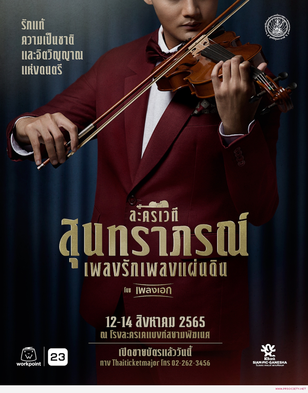 “ละครเวทีสุนทราภรณ์ เพลงรักเพลงแผ่นดิน โดยเพลงเอก” จัดแสดงในวันที่ 12-14 สิงหาคมนี้ ณ โรงละครเคแบงก์สยามพิฆเนศ ชั้น7 สยามสแควร์วัน บัตรราคา : 4,000 / 3,500 / 3,000 / 2,500 / 2,000 และ 1,500 บาท เปิดขายบัตรวันนี้แล้ว ทาง Thaiticketmajor โทร. 02-262-3456