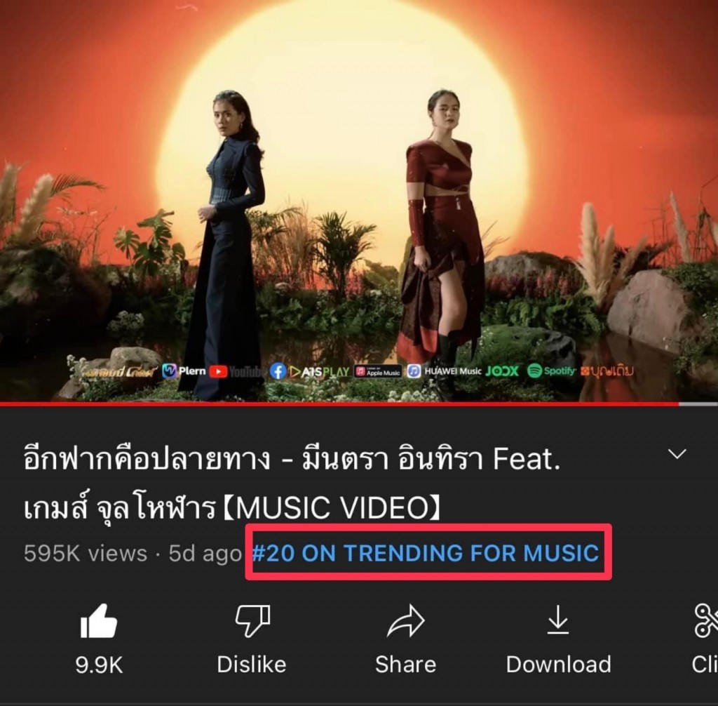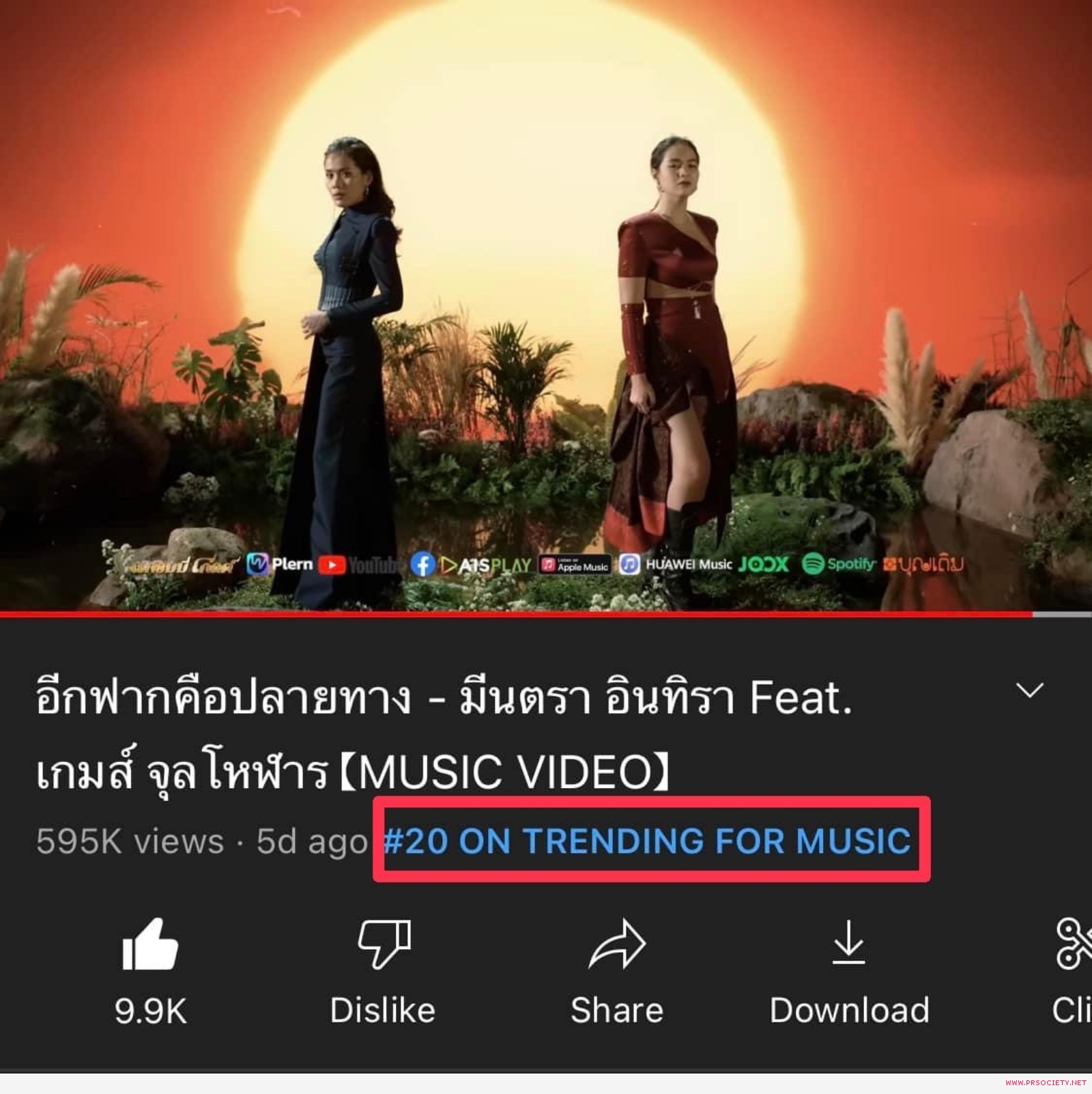 ไม่ว่าจะกลับมากี่ครั้งก็ปัง กับ Diva ลูกทุ่งสาว “มีนตรา อินทิรา” จากค่าย “แกรมมี่โกลด์” หลังจากได้ปล่อย MV เพลง “อีกฟากคือปลายทาง” เพลงแรกจากดิจิทัลอัลบั้ม “สุดขอบฟ้าในคืนเดือนหงาย” ที่เธอได้ดึงพี่สาวคนสนิทจากเวที The Voice Thailand อย่าง “เกมส์ จุลโหฬาร” มาร้องด้วยกัน ปล่อยออกมาเพียงแค่ 10 วัน ตอนนี้ยอดวิวก็ได้พุ่งทะยานมาถึง 1 ล้านวิวส์เป็นที่เรียบร้อยแล้ว แถมที่ผ่านมายังติดเทรนด์สูงสุด #20 เพลงมาแรง ในยูทูบอีกด้วย สร้างความดีใจให้กับทั้งมีนตรา และเกมส์เป็นอย่างมาก