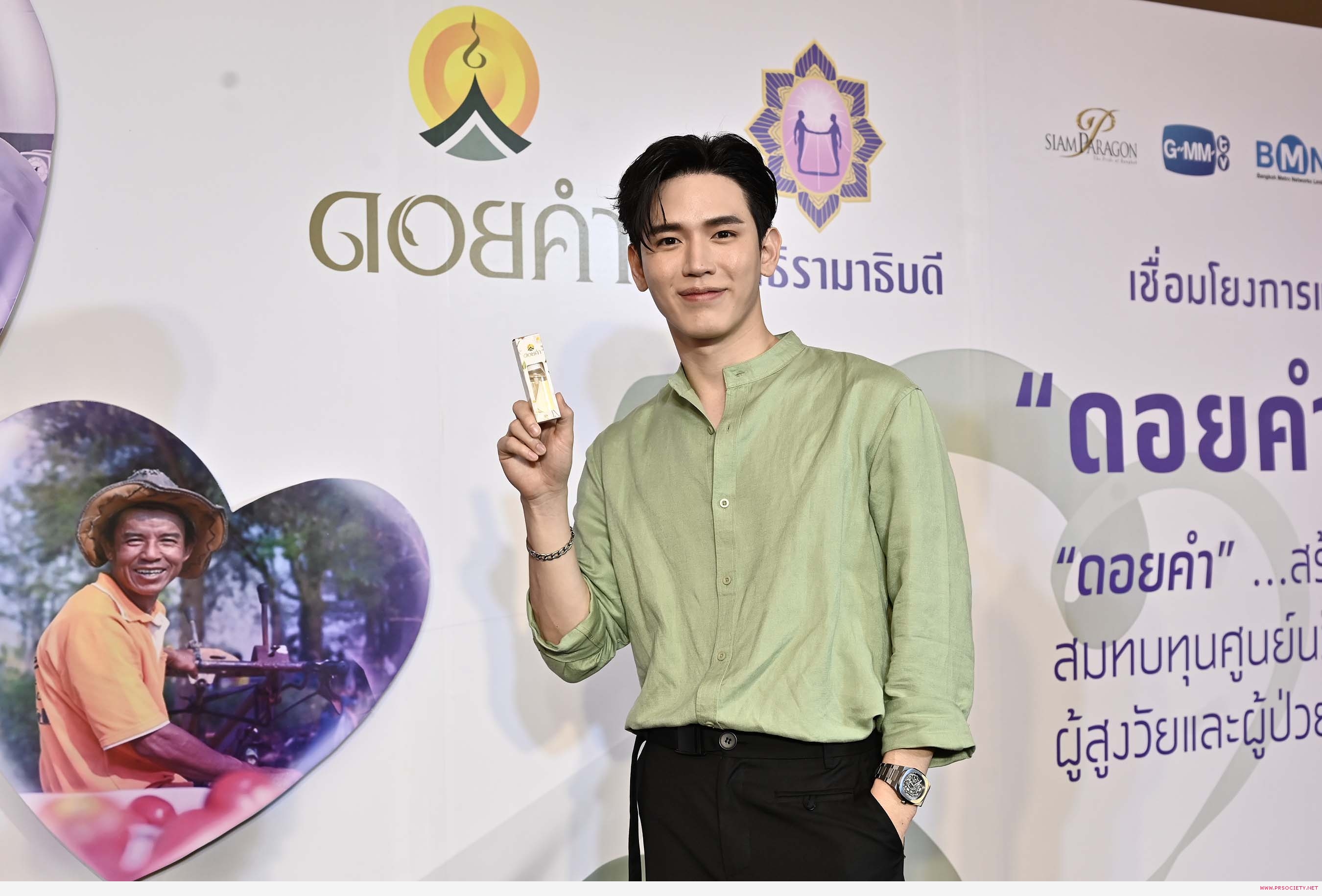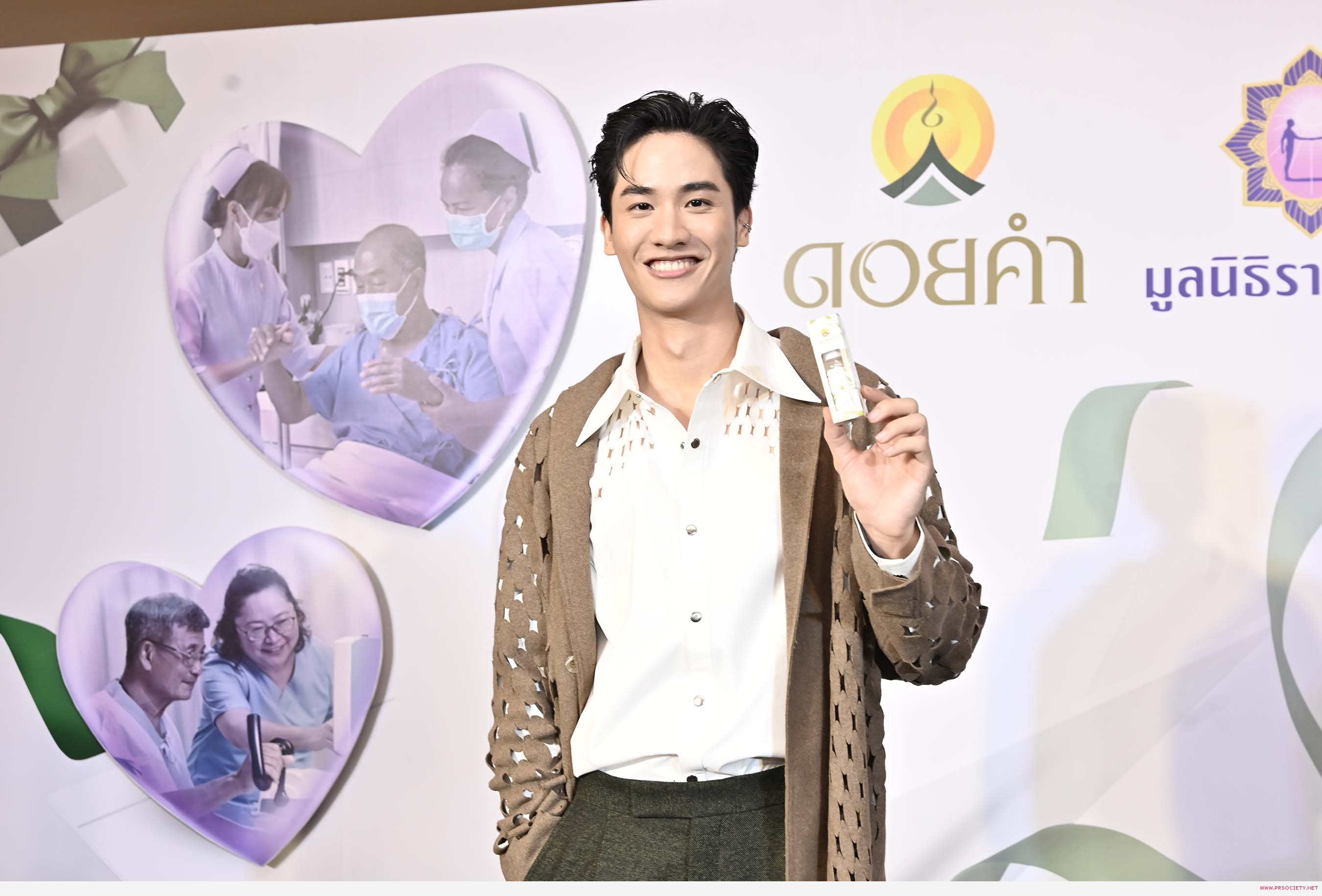 จึงรู้สึกยินดีเป็นอย่างยิ่งที่ได้เป็นส่วนหนึ่งของโครงการ “ดอยคำ แชร์ริตี้” เพราะนอกจากจะได้เป็นตัวแทนช่วยโปรโมตโครงการแล้ว ยังได้มีส่วนร่วมในการออกแบบลวดลายบนแพ็กเกจสเปรย์แอลกอฮอล์กลิ่นชาเขียว ซึ่งได้รับแรงบันดาลใจในการออกแบบมาจากความสวยงามของรูปทรงใบชาเชียว ความเป็นธรรมชาติของภาคเหนือ และที่สำคัญอยากให้ผลิตภัณฑ์เข้าถึงทุกคนได้ จึงออกแบบให้มีความทันสมัย เข้าถึงคนรุ่นใหม่ ใช้แล้วดูดีครับ”