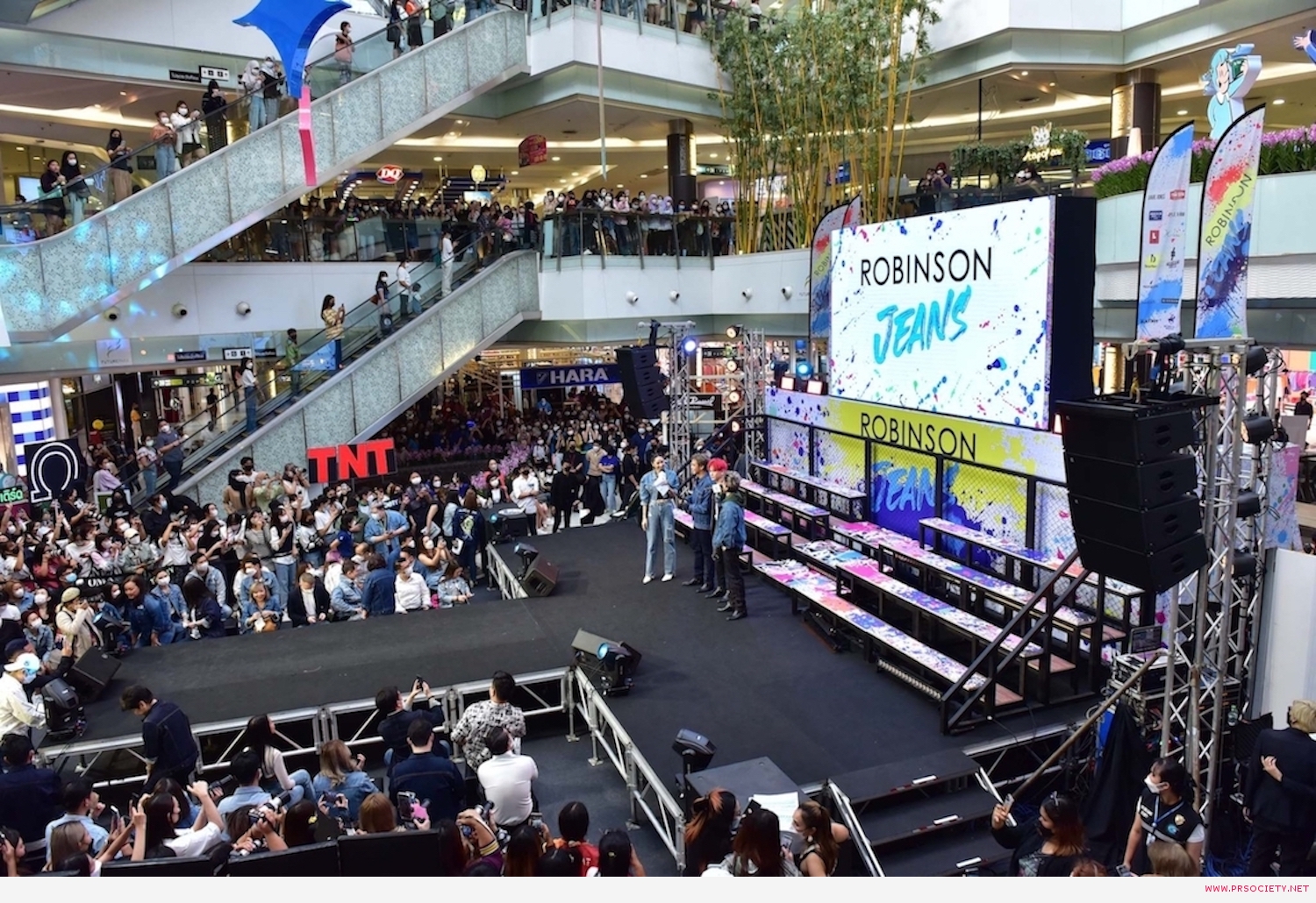 สำหรับที่สุดของความพิเศษในบิ๊กแฟร์ยีนส์แห่งปี “ROBINSON JEANS 2022” ประเดิมด้วยการคิกออฟสุดอลังแบบห้างแตก! กับแฟชั่นรันเวย์ในคอนเซ็ปต์สุดคูล “ART OF JEANS ON RUNWAY” นำเสนอเทรนด์ยีนส์คอลเลกชันต่างๆ ที่เปรียบเสมือนงานศิลปะที่สวยงามและมีเอกลักษณ์ นำโดย 3 หนุ่มสุดฮอตวง TRINITY “เติร์ด – ปอร์เช่ – แจ๊คกี้” และทัพดารายีนส์ไอคอนนิกจากแบรนด์ยีนส์ชั้นนำมากมาย ไม่ว่าจะเป็น โอม ภวัต (NIYOM JEANS), มุก วรนิษฐ์ (BEARBEARY), มีน พีรวิชญ์ (MC JEANS),โอห์ม ฐิติวัฒน์, (GASOLINE), เก้า นพเก้า (JACK RUSSEL), โอบ โอบนิธิ (LEE COOPER), น้ำตาล ทิพนารี (WARA), จิมมี่ จิตรพล (BUCKOFF), เปรม วรุศ (BOVY), ทอมมี่ สิทธิโชค (LEVI’S), ปีเตอร์แพน ทัศพล (ROUTEBLUE), ยุ่น ภูษณุ (ROSANIYOM),ก้าวหน้า กิตติภัทร(DAVIE JONES), โน่ ภูหลวง (SIMPLE & RAW), ดิว นิติกร (WRANGLER), กัน กฤติกร (HARA), มีน ณัฐกฤต(LEE) พร้อมฟินไปกับมินิคอนเสิร์ตจาก 3 หนุ่ม TRINITY ที่เรียกเสียงกรี๊ดจากบรรดาเอฟซีและนักช้อปยีนส์เลิฟเวอร์แบบสนั่นห้างฯ จนขึ้นแท่นเป็นแฟชั่นรันเวย์ยีนส์แห่งปีเป็นที่เรียบร้อย