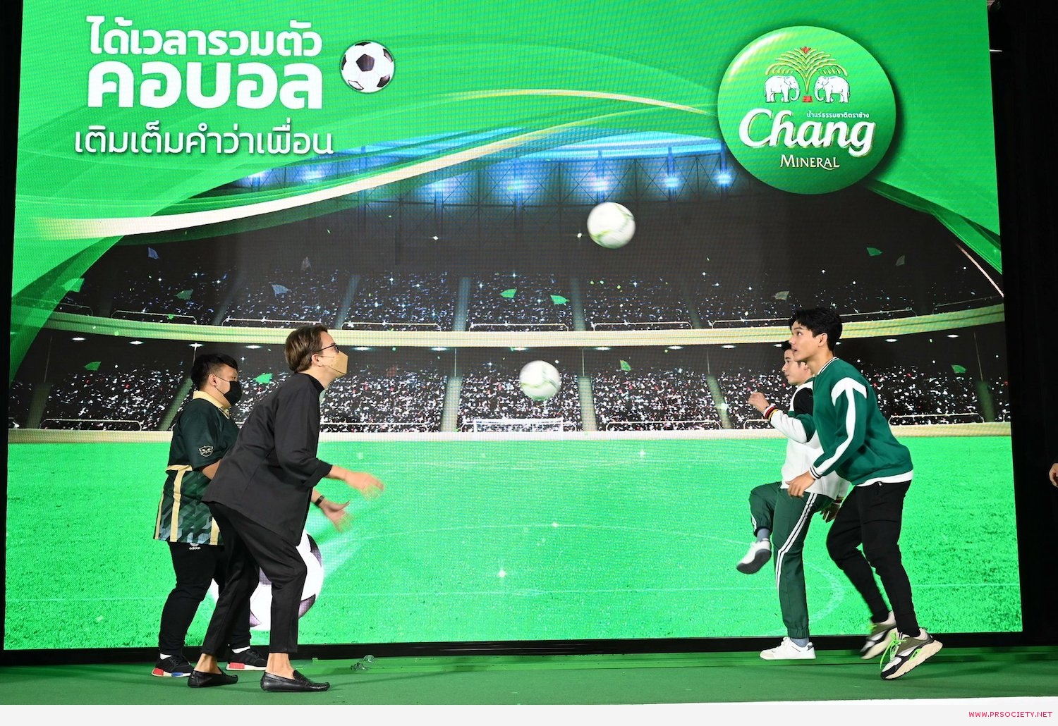 งานนี้ “น้ำแร่ธรรมชาติตราช้าง” นำทีมโดยนายเลสเตอร์ ตัน ผู้บริหารผลิตภัณฑ์น้ำแร่ธรรมชาติตราช้าง จึงเนรมิตบริเวณลานอีเดน กลางห้างสรรพสินค้าเซ็นทรัลเวิลด์ ให้เป็นสนามฟุตบอลเก๋ ๆ เปิดตัวแคมเปญโฆษณาฟุตบอลใหม่ ที่ถ่ายทอดเรื่องราวของส่วนผสมที่ลงตัวระหว่าง “ฟุตบอล” “เพื่อน” และ “น้ำแร่ธรรมชาติตราช้าง” งานนี้สองเพื่อนซี้คอบอล “มาริโอ้” และ “นิกกี้” เปิดตัวบน “โซฟาสีเขียวของน้ำแร่ธรรมชาติตราช้าง” ซึ่งเป็นกิมมิคในงาน และเป็นพาหนะของทั้งสองหนุ่มในโฆษณาฯ เพื่อรวมตัวเพื่อน ๆ คอบอลจากที่ต่าง ๆ ให้มาอัพโมเมนต์การเชียร์ฟุตบอลให้สนุกและพิเศษกว่าใคร