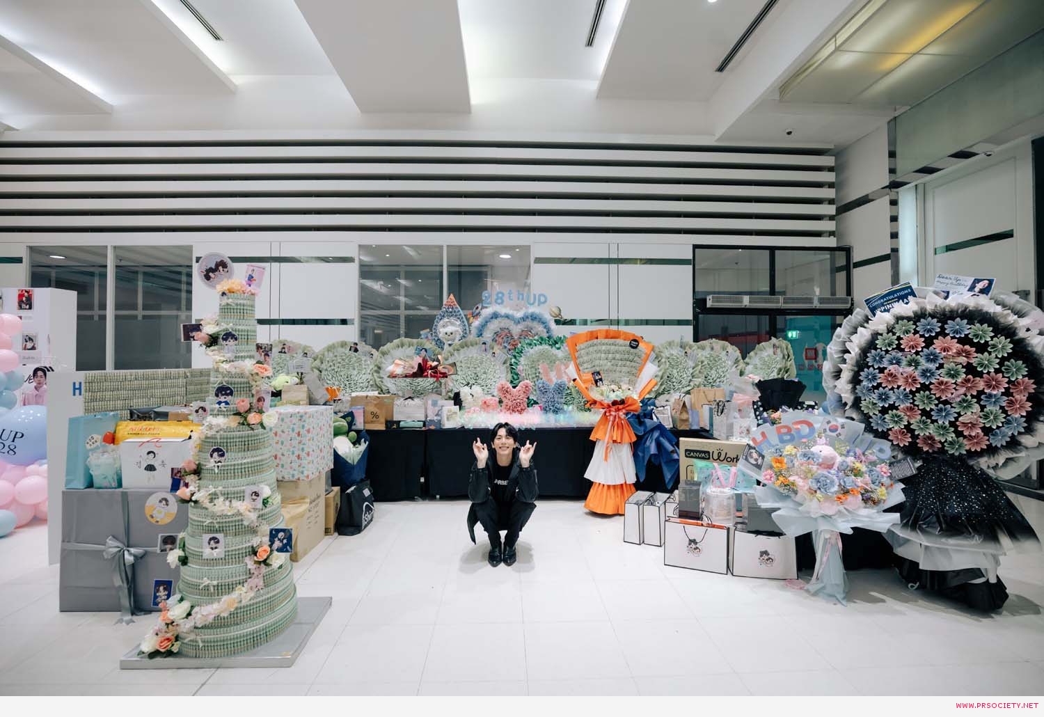 ทันทีที่แฟนๆ ทยอยมาถึงงาน ทุกคนต่างต้องเซอร์ไพรส์กับ “กองทัพของขวัญ” จากแฟนๆ ที่ส่งมาเบิร์ธเดย์หนุ่มอัพล่วงหน้า ทำเอาด้านหน้า MCC HALL ละลานตาไปด้วยกล่องของขวัญ แบงก์ดอกไม้ ทั้งแบบช่อ และแผ่นป้ายขนาดใหญ่ แถมยังมาไกลจากทั้ง จีน เกาหลี ญี่ปุ่น ฯลฯ