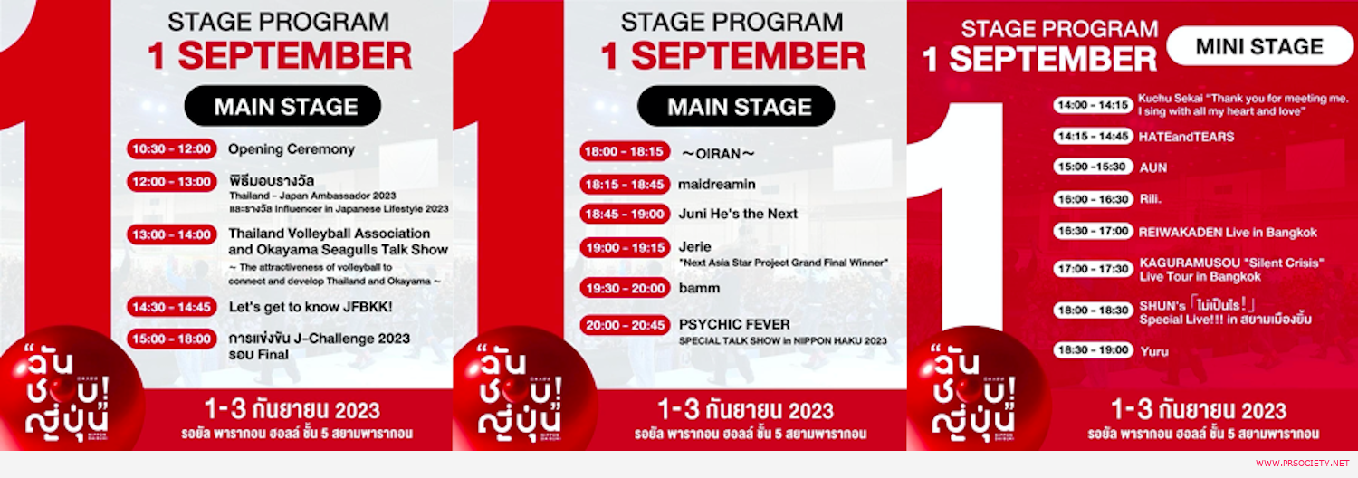 เตรียม #ตะโกนออกมาว่าฉันชอบญี่ปุ่น ให้สุดเสียง แล้วมาปล่อยพลังความสนุกสุดมันส์ไปกับ “NIPPON HAKU BANGKOK 2023” งานมหกรรมเพื่อคนรักญี่ปุ่นแบบครบทุกเรื่องครั้งใหญ่ที่สุดในประเทศไทย ที่ปีนี้มาในธีม “NIPPON DAISUKI!” #ตะโกนออกมาว่าฉันชอบญี่ปุ่น เตรียมมาปล่อยใจจอยๆ กับทุกเรื่องของความเป็นญี่ปุ่นที่รวบตึงแบบครบทุกมิติมาไว้ในงานเดียว พร้อมให้คนรักญี่ปุ่นได้อินกันจนฟินกับทุกกิจกรรมและความบันเทิงภายในงาน และสัมผัสกับความเป็นญี่ปุ่นอย่างแท้จริง ระหว่างวันที่ 1 – 3 กันยายน 2566 ณ ชั้น 5 สยามพารากอน โดยเฉพาะ สายกรี๊ด สานแดนซ์ ห้ามพลาดเด็ดขาด!!เพราะเหล่าศิลปินไทย ญี่ปุ่น เตรียมพร้อมมามอบความสนุก แบบจัดหนักจัดเต็มตลอดทั้ง 3 วัน ทั้ง Main Stage และ Mini Stageนำทีมโดย