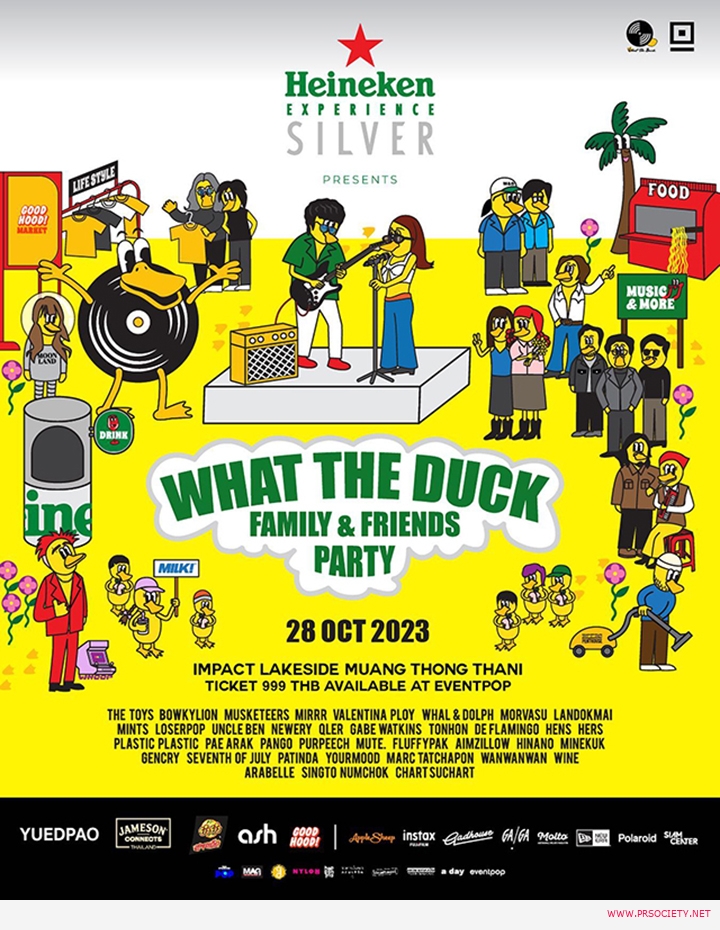 ซึ่งทุกคนสามารถรับฟังเพลง บ้านหลังนี้ (HOME)” แบบสด ๆ พร้อมกันครั้งแรกในประวัติศาสตร์ ได้ในคอนเสิร์ต “Heineken Experience Silver Presents WHAT THE DUCK FAMILY & FRIENDS PARTY” และสำหรับ ใครที่ยังไม่มีบัตรคอนเสิร์ต สามารถซื้อบัตรได้ผ่านทาง Eventpop https://www.eventpop.me/e/15866/family-friends-party แล้วพบกันในวันเสาร์ที่ 28 ตุลาคม ณ ริมทะเลสาบเมืองทองธานี