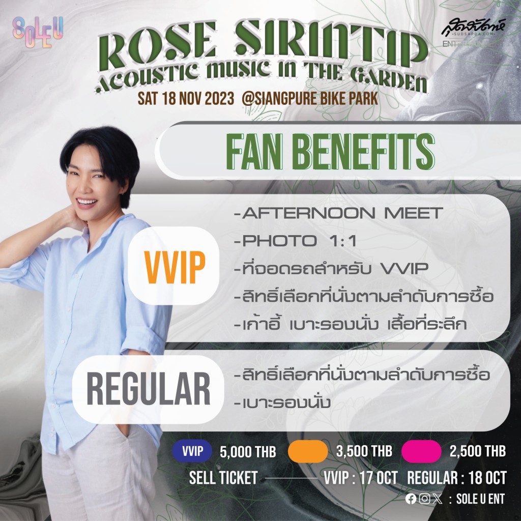 ติดตามรายละเอียดและช่องทางการจำหน่ายบัตรได้ที่ โซเชียลมีเดียของ Sole U Entertain