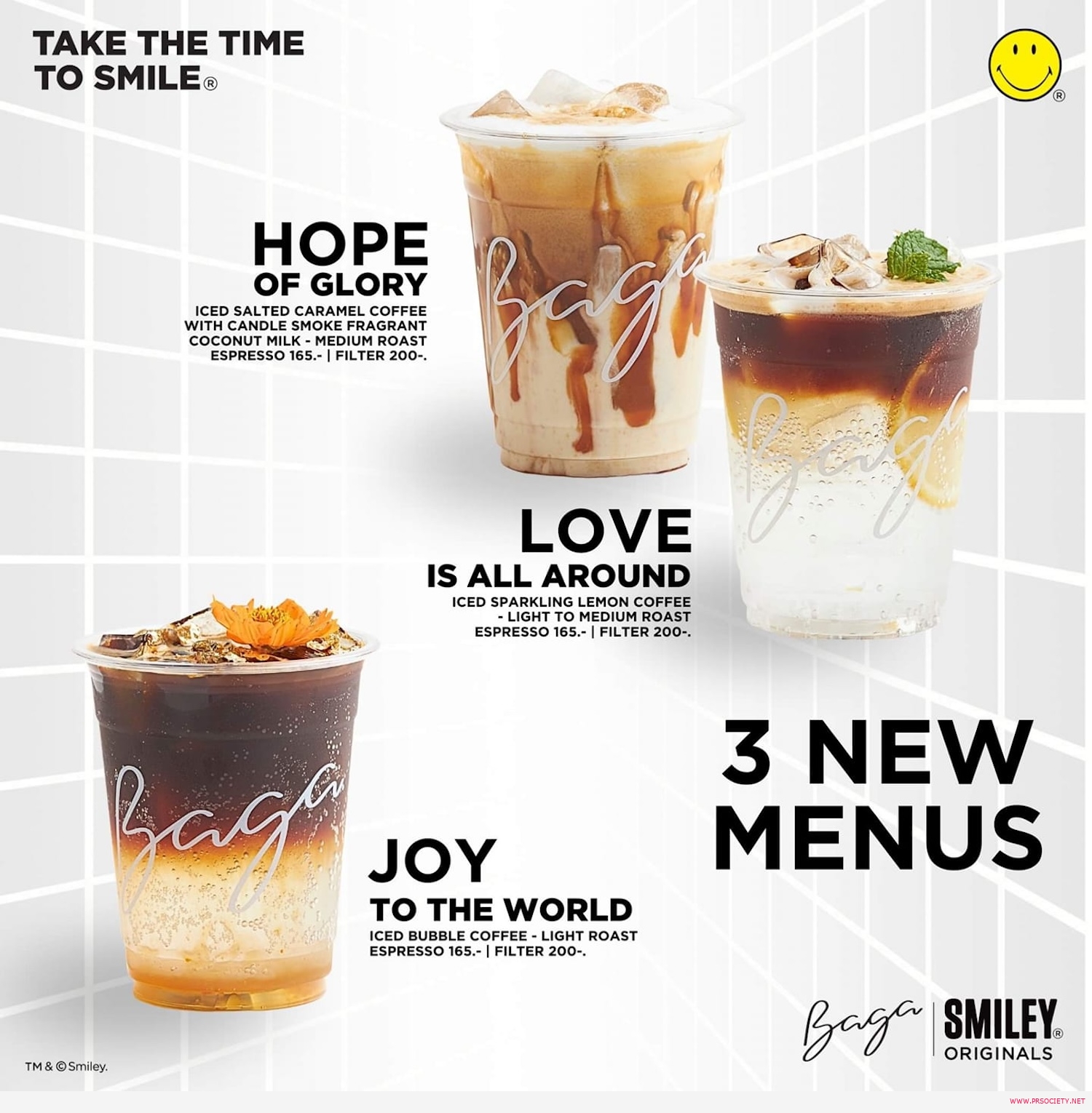 ครั้งแรกของประเทศไทย! Café BAGA ไลฟ์สไตล์คาเฟ่ หนึ่งเดียวที่ได้รับเลือกจาก SMILEY® ORIGINAL แบรนด์ดังแห่งประเทศอังกฤษ พร้อมส่งคอลแลปส์คอลเล็กชั่นสุดเอ็กซ์คลูซีฟ ภายใต้คอนเซ็ปต์ TAKE THE TIME TO SMILE® โดยใช้โลโก้อิโมจิชื่อดัง SMILEY® เป็นตัวแทนสร้างความความรู้สึกแบบ “ฟีลกู้ด” ร่าเริง สดใสเพื่อสร้างประสบการณ์ความสุขที่แตกต่างไปจากเดิมให้กับผู้บริโภคทุกคน