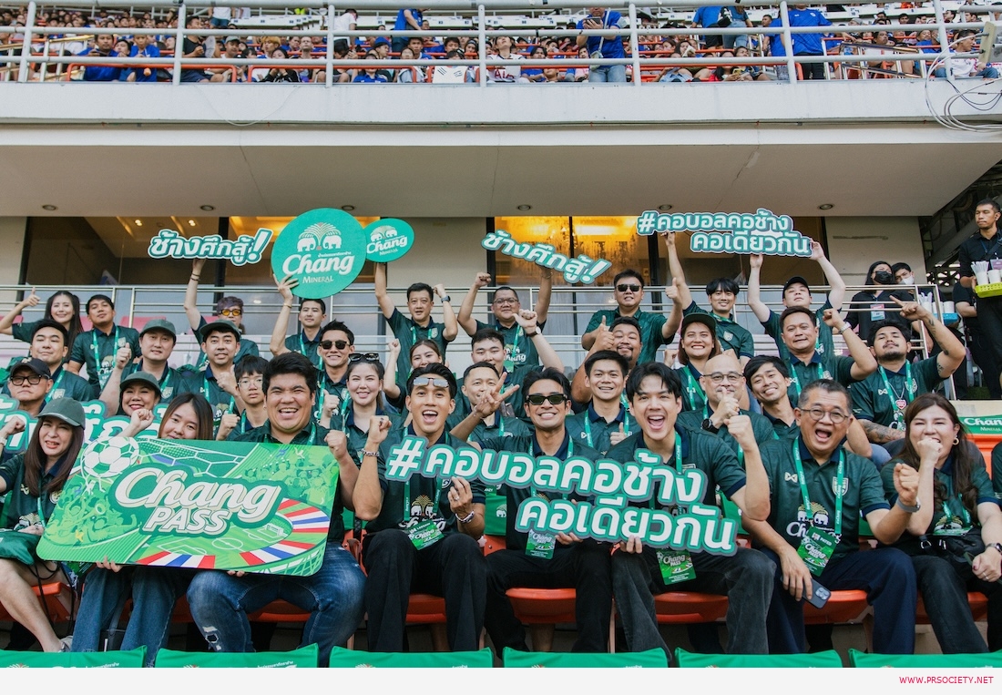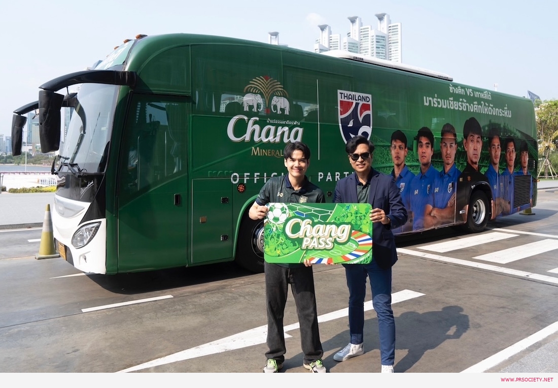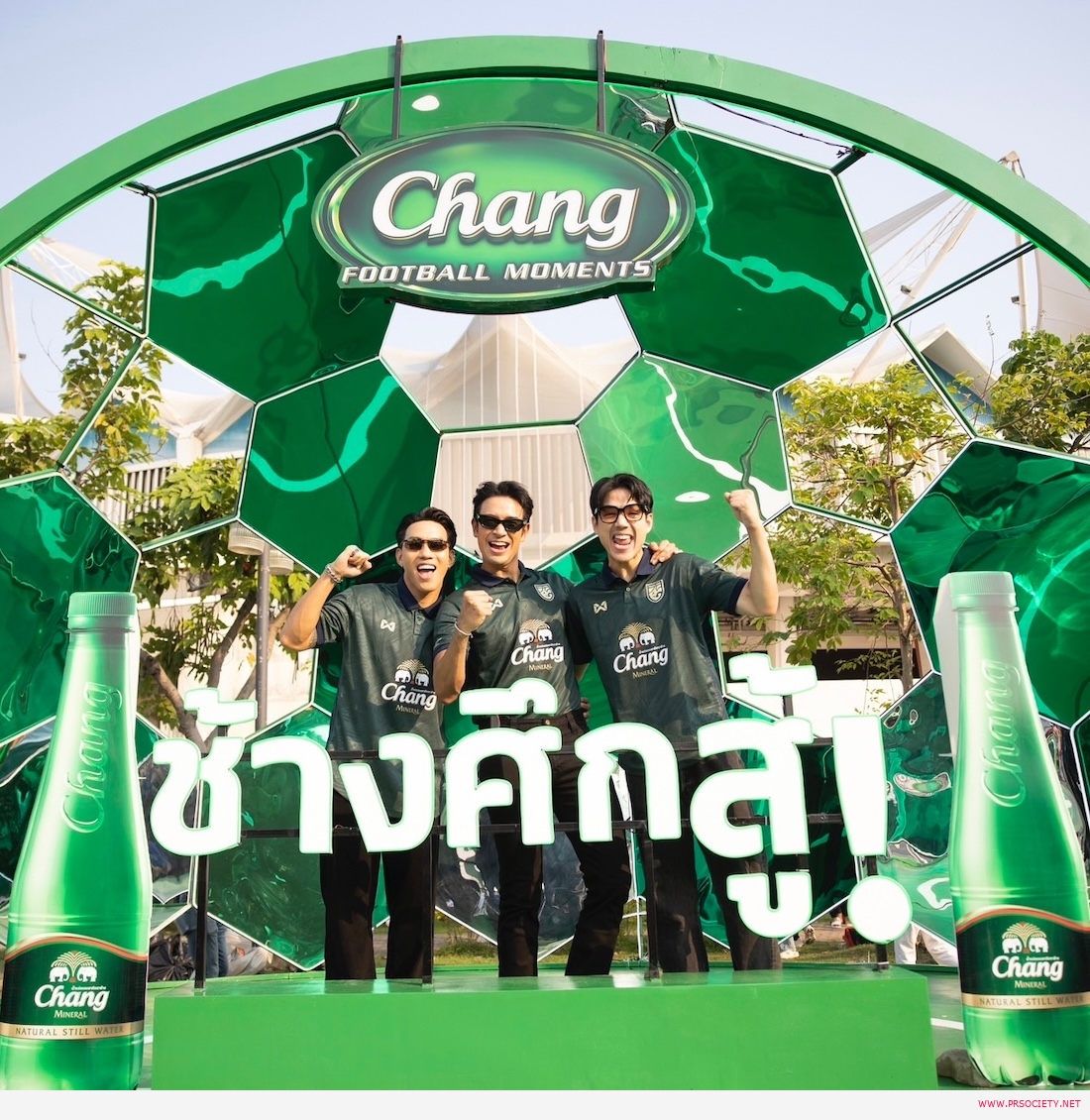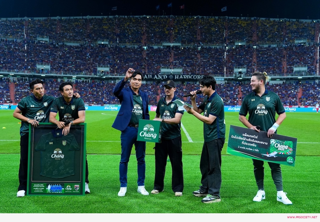 นำทีมโดย นายทรงวิทย์ ศรีธรรม (ที่สามจากซ้าย) ผู้บริหารระดับสูงน้ำแร่ธรรมชาติตราช้าง “นิกกี้ ณฉัตร จันทพันธ์” พร้อมด้วย “เกรท วรินทร ปัญหากาญจน์” “สเตฟาน ฐสิษฐ์ สินคณาวิวัฒน์” “ลีซอ วีรเทพ วิโนทัย” และ “เฟย ภัทรเอกแสงกุล” ลงไปกลางสนาม ไปแจกรางวัลใหญ่ Chang Pass เพื่อขอบคุณทุกเสียงเชียร์จากแฟนๆ ช้างศึก มอบแพ็กเกจบินลัดฟ้าไปเชียร์ฟุตบอลโลกรอบคัดเลือกนัดชี้ชะตาระหว่างช้างศึกและทีมชาติจีน ที่จะมีขึ้น ในวันที่ 6 มิถุนายนนี้ ให้กับแฟนช้างศึก 4 ที่นั่ง (จำนวน 2 รางวัลๆ ละ 2 ที่นั่ง) ได้ไปส่งเสียงเชียร์ให้ดังกระหึ่มถึงขอบสนามประเทศจีนกับเพื่อนซี้คอบอลในวงการบันเทิงอีกเพียบ พร้อมด้วยรางวัลระดับแรร์ไอเทม-เสื้อช้างศึกพร้อมลายเซ็นโค้ชอิชิอิและนักเตะระดับซุปตาร์ เช่น เจ ชนาธิป และ อุ้ม ธีราทร ฯลฯ อีก 1 รางวัล