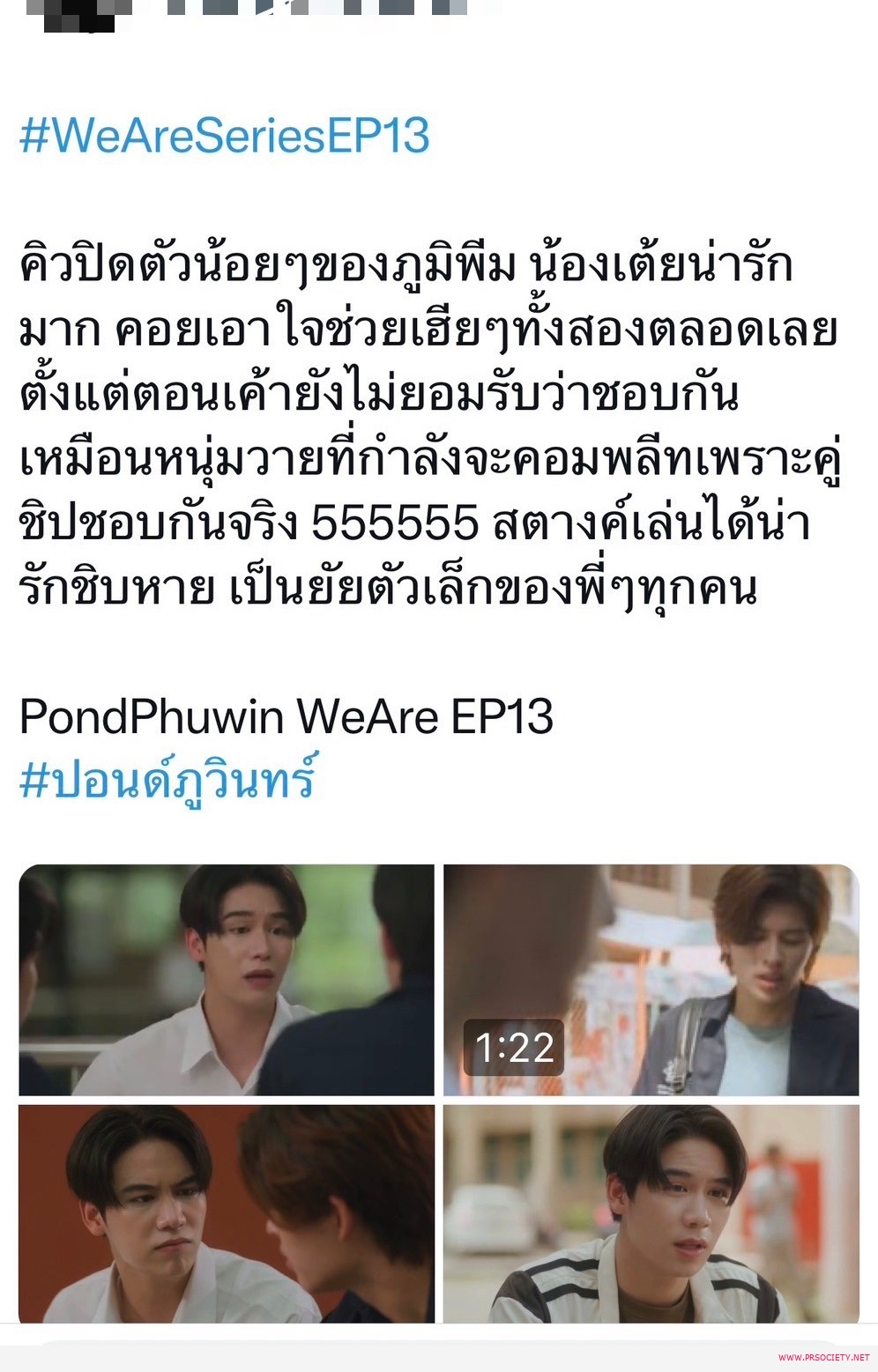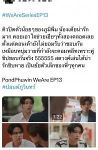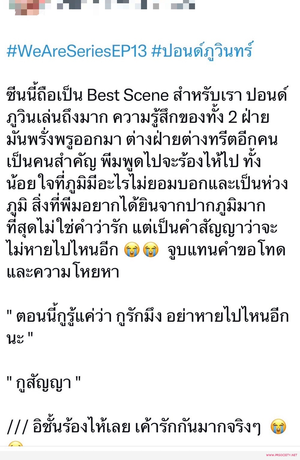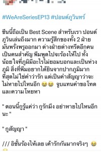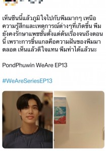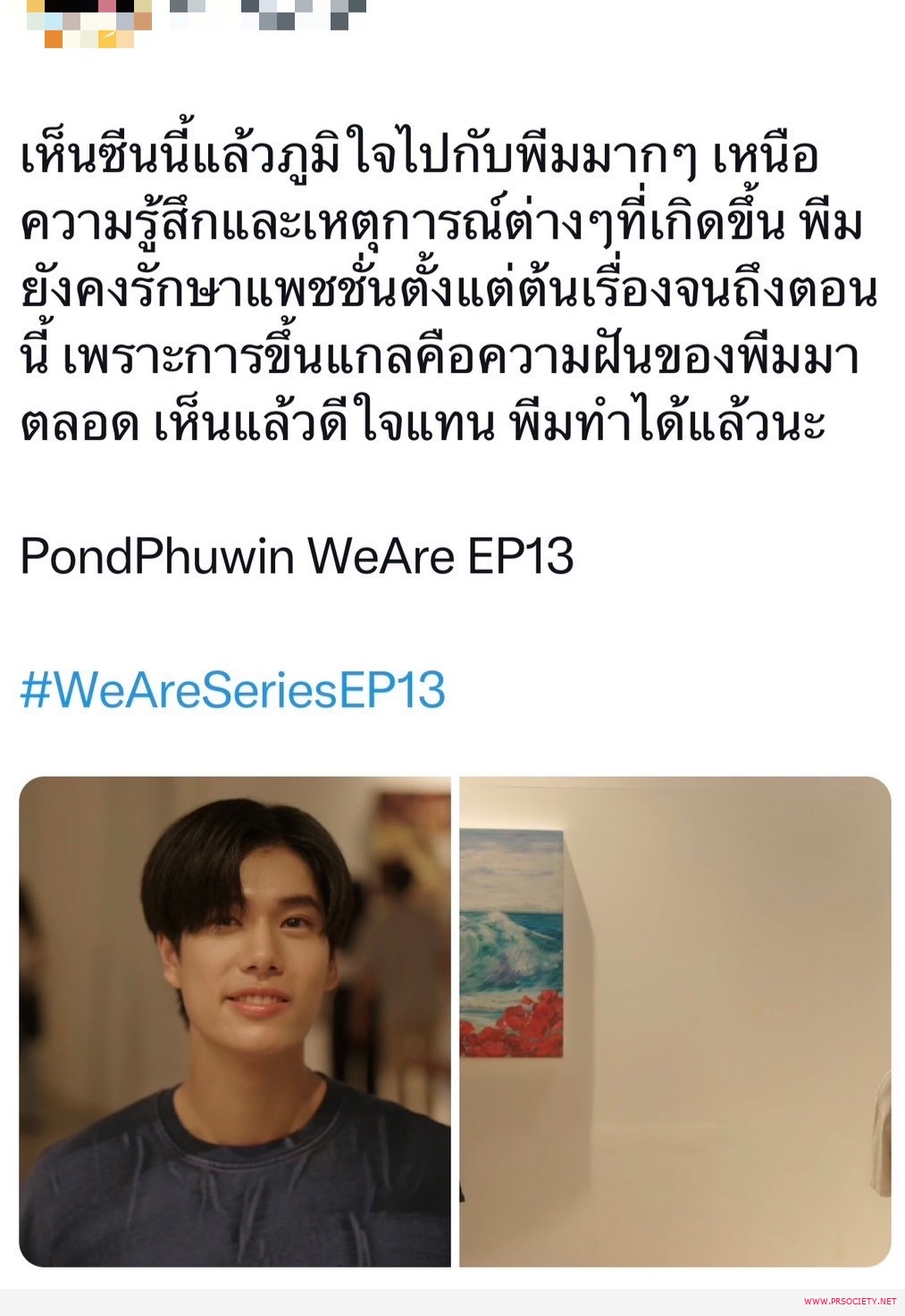 -เห็นซีนนี้แล้วภูมิใจไปกับพีมมากๆ เหนือความรู้สึกและเหตุการณ์ต่างๆ ที่เกิดขึ้น พีมยังคงรักษาแพชชั่นตั้งแต่ต้นเรื่องจนถึงตอนนี้ เพราะการขึ้นแกลคือความฝันของพีมมาตลอด เห็นแล้วดีใจแทน พีมทำได้แล้วนะ #WeAreSeriesEP13