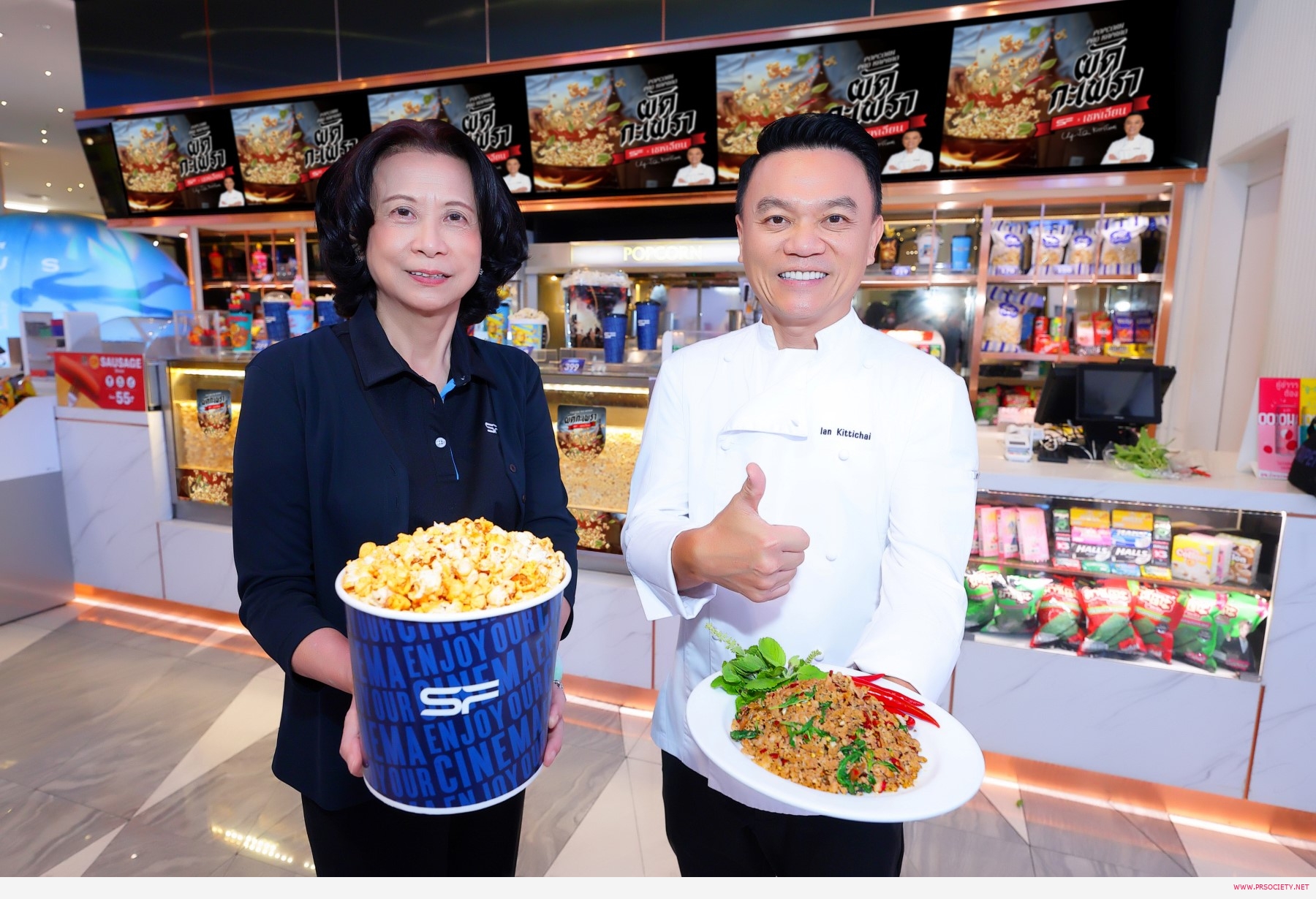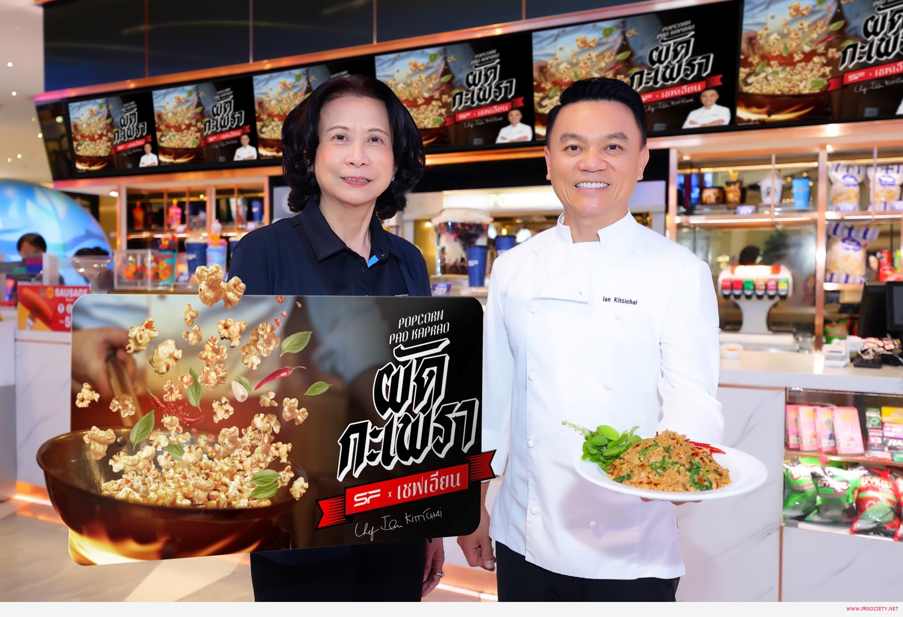 บริษัท เอส เอฟ คอร์ปอเรชั่น จำกัด (มหาชน) ผู้ประกอบธุรกิจโรงภาพยนตร์ชั้นนำของประเทศไทย ร่วมกับ “เชฟเอียน-พงษ์ธวัช เฉลิมกิตติชัย” เชฟชื่อดังระดับโลก ร่วมสร้างปรากฏการณ์ความอร่อยรูปแบบใหม่ด้วยป๊อปคอร์น “รสผัดกะเพรา” ผสมผสานความอร่อยจากป๊อปคอร์นสุดพรีเมียมของ เอส เอฟ และผงปรุงรสชาติพิเศษที่ถูกพัฒนาโดย “เชฟเอียน” ให้ได้สัมผัสความกลมกล่อมของรสกะเพราแท้ ๆ พร้อมจำหน่ายตั้งแต่วันที่ 12 สิงหาคม 2567 เป็นต้นไป ที่โรงภาพยนตร์ในเครือ เอส เอฟ ทุกสาขาทั่วประเทศ รวมทั้ง POP BOOTH, ช่องทางออนไลน์เดลิเวอรี่ ที่ให้บริการ