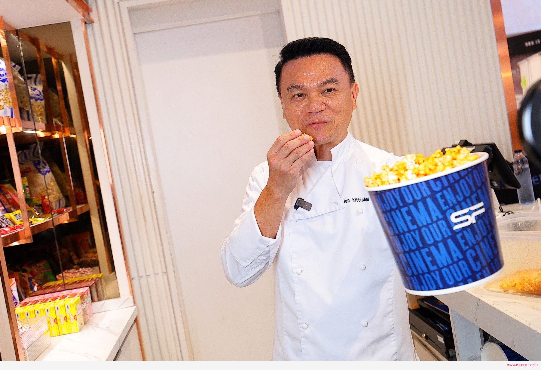ด้าน เชฟเอียน-พงษ์ธวัช เฉลิมกิตติชัย เผยถึงความร่วมมือในครั้งนี้ว่า “ในฐานะเชฟ ผมให้ความสำคัญกับการมอบประสบการณ์และความสุข ในการรับประทานอาหาร เช่นเดียวกันกับที่ เอส เอฟ ให้ความสำคัญกับการมอบประสบการณ์และความสุขในการชมภาพชมภาพยนตร์ ดังนั้น ความร่วมมือกันครั้งนี้ จึงเป็นการส่งมอบประสบการณ์ที่สมบูรณ์แบบให้กับทุกคน ผ่านป๊อปคอร์นรสชาติพิเศษ ‘ป๊อปคอร์น รสผัดกะเพรา’ ที่ผมต้องการนำเสนอเอกลักษณ์ความเป็นไทย ด้วยรสชาติแบบผัดกระเพราแท้ๆ ซึ่งผมได้พัฒนาและควบคุมคุณภาพการผลิตด้วยตนเอง เพื่อให้มั่นใจได้ว่าทุกคนจะชื่นชอบ จากจุดเด่นคือรสชาติกลมกล่อม และกลิ่นที่ชัดเจน ยิ่งผสมผสานกับป๊อปคอร์นคุณภาพ พรีเมียม เมล็ดใหญ่เต็มปากเต็มคำแล้ว รับรองว่าทุกคนต้องติดใจแน่นอนครับ ผมอยากชวนทุกคนลองมาสัมผัสความพิเศษนี้ เฉพาะ เอส เอฟ เท่านั้นนะครับ”