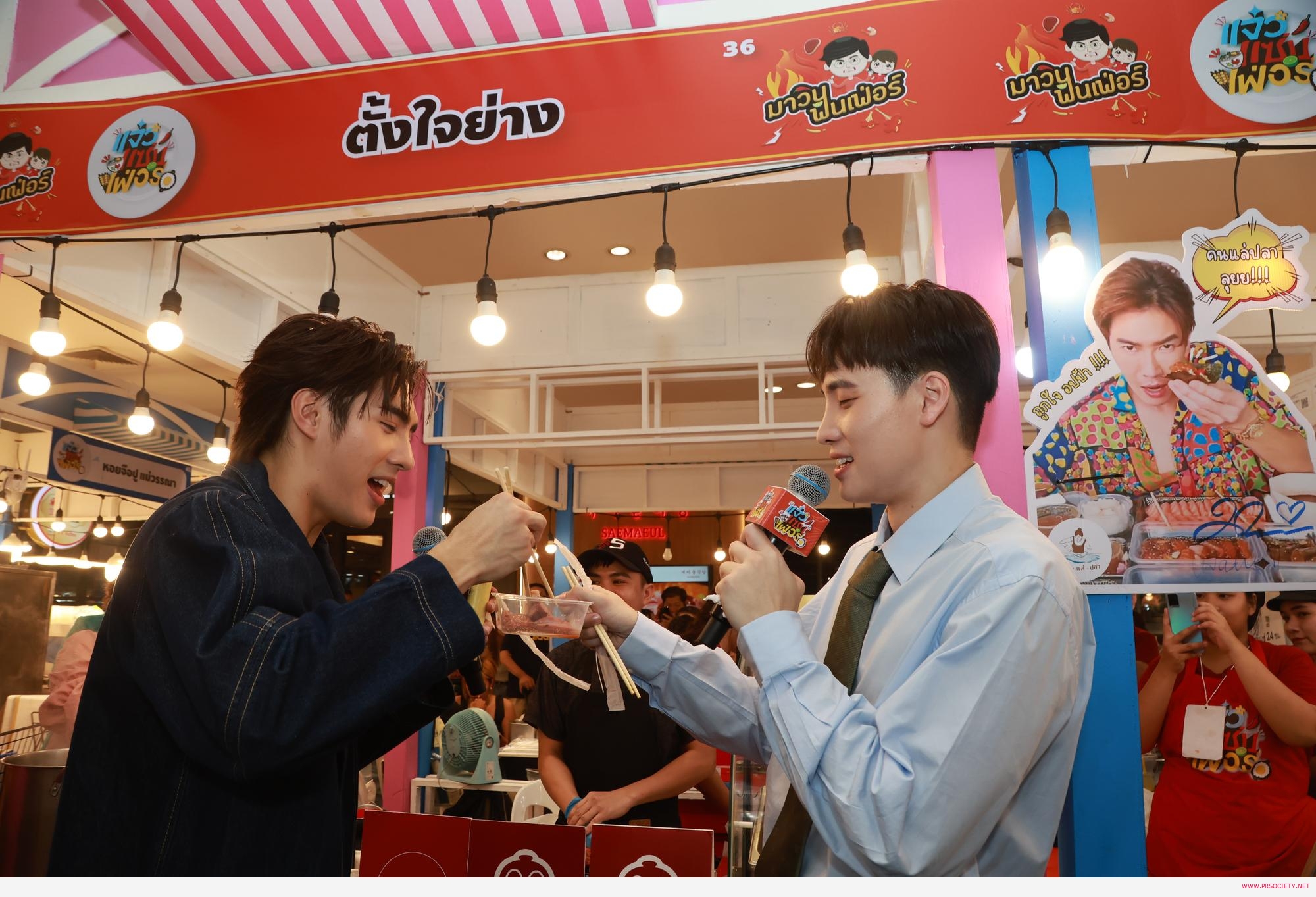 นอกจากนี้ยังมีนางเอกตัวแม่ “มิ้นต์ ชาลิดา” ที่ขอพักรบชั่วคราวกับ “มาวิน ทวีผล” ในบท “เฮียเคี้ยง” ตัวแสบจากละคร “ซ่านเสน่หา” ทั้งคู่ขอควงกันมาร่วมกระทบไหล่กับสายกินเหมือนกัน และ สาวมิ้นต์ ยังยกร้านไอศกรีม Minitogelato ทุกรสชาติ มาร่วมออกบูธในงานนี้ด้วย มีทั้งแบบถ้วยและแบบแซนวิส ทุกคนที่ได้ชิมจะต้องติดใจ หลังจากนั้นก็ปล่อยให้ “มาวิน” สายกินตัวพ่อ ขอทำหน้าที่พิธีกรจากรายการ “มาวินฟินเฟ่อร์” พาทัวร์ กิน-ชิม-ช้อป ทั้ง หมูย่างเมืองตรัง และ ส้มตำ น้อย โพธิ์งาม ซึ่งโดนใจสาวมิ้นต์เป็นที่สุด ก่อนปิดท้ายกับสองหนุ่มเนื้อทอง “มีน พีรวิชญ์” และ “ปีเตอร์แพน ทัศน์พล” จากละครเรื่อง “หนึ่งในร้อย” กันบ้าง ทันทีที่มาถึง ก็ชวนกันไปชิมอาหารคาวหวานตามที่เล็งเอาไว้เกือบทุกร้าน ไม่ว่าจะเป็น กระเพาะปลา, ขนมจีน, จ๊อปู, ยำวุ้นเส้น, ขนมชั้น, ข้าวหลาม ตลอดจน ข้าวเหนียวมะม่วง ที่เหมือนจะถูกอกถูกใจไปทุกเมนู และเพื่อให้หนำใจเป็นที่สุด สองหนุ่มจึงขอหอบหิ้วเอาของอร่อย ๆ กลับไปฟินกันต่อที่บ้านแบบชุดใหญ่ไฟกะพริบ