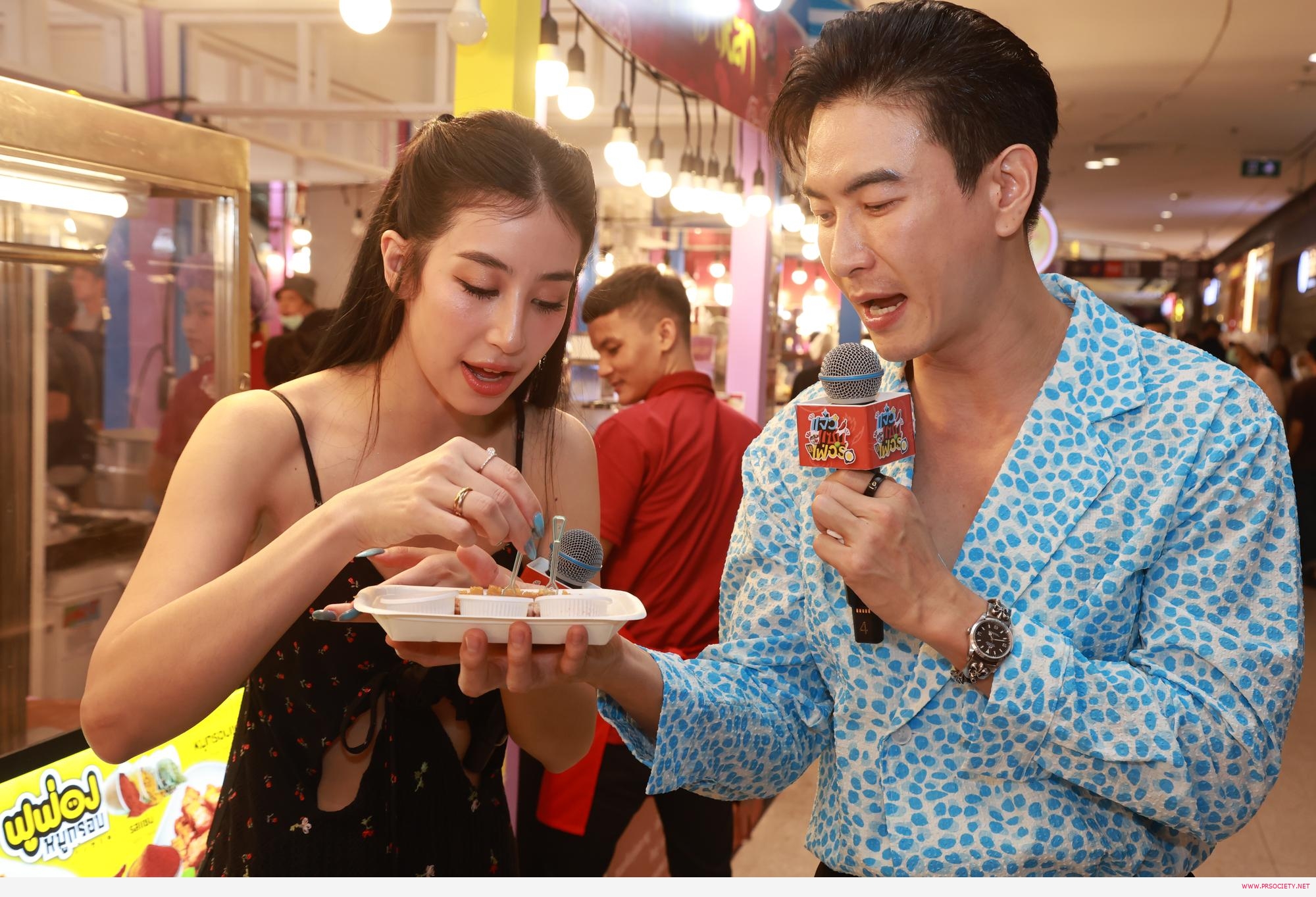 และ เมื่อสอง พระ-นาง ตัวท็อป อย่าง “ยิหวา ปรียากานต์ และ จ็อบ ธัชพล ที่กำลังปัง! กับละครผีไทยสุดอมตะ ในบท “แม่นาค” กับ “พี่มาก” จากเรื่อง “นางนาคพระโขนง” มาเยือนตลาด โดยชวนสองเพื่อนนักแสดง เจ้าบทบาท “แก๊ป ชนกสุดา” และ “แก๊ป จักริน” ที่รับบท “สร้อย” และ “ทึ่ม” มาตะลุยหาของอร่อย ชิม-ช้อป ไปด้วยกัน และต้องตื่นตาตื่นใจไปกับอาหารมากมาย ที่ได้เดินชิมเกือบทุกร้านจนอิ่มพุงกางเลยทีเดียว