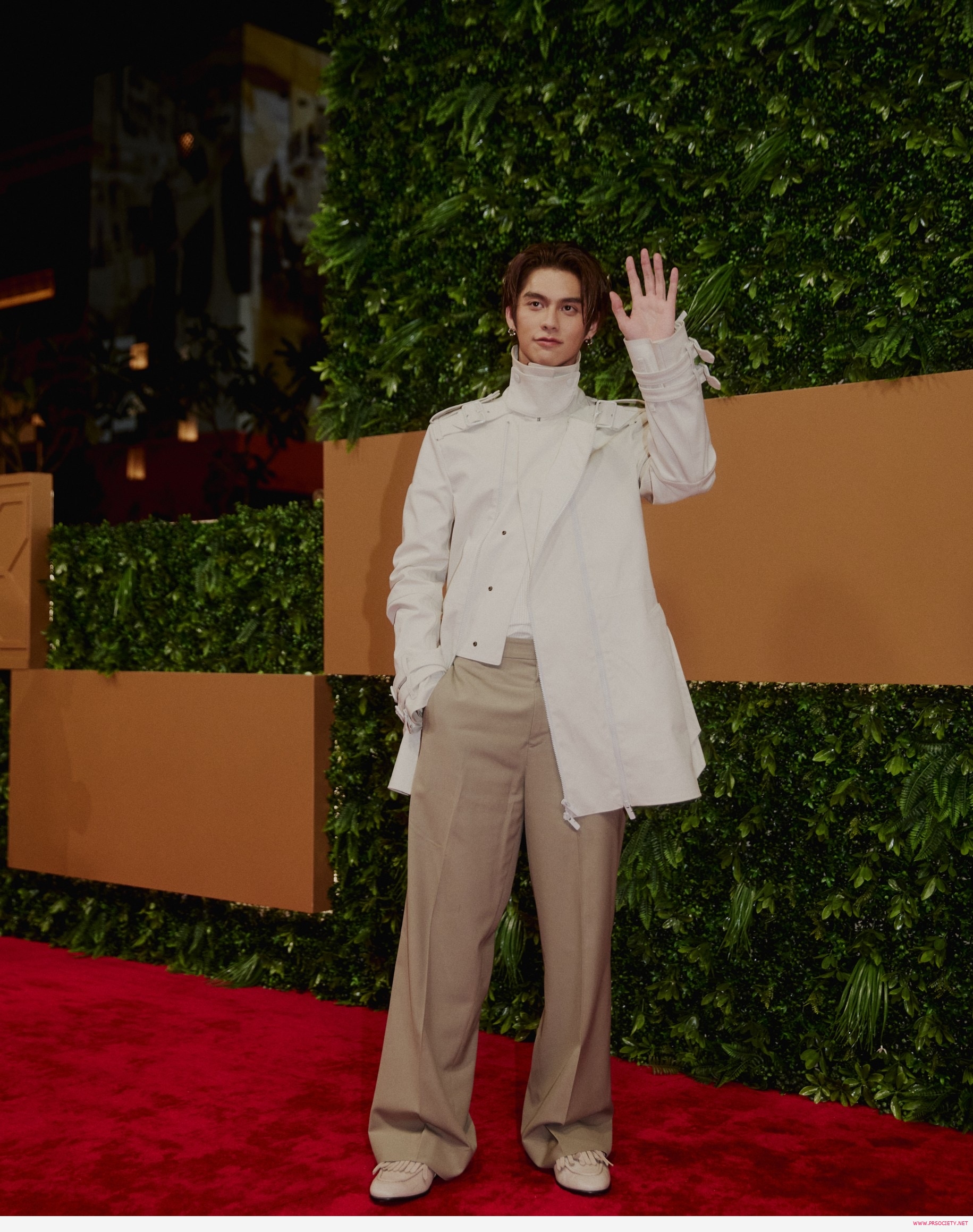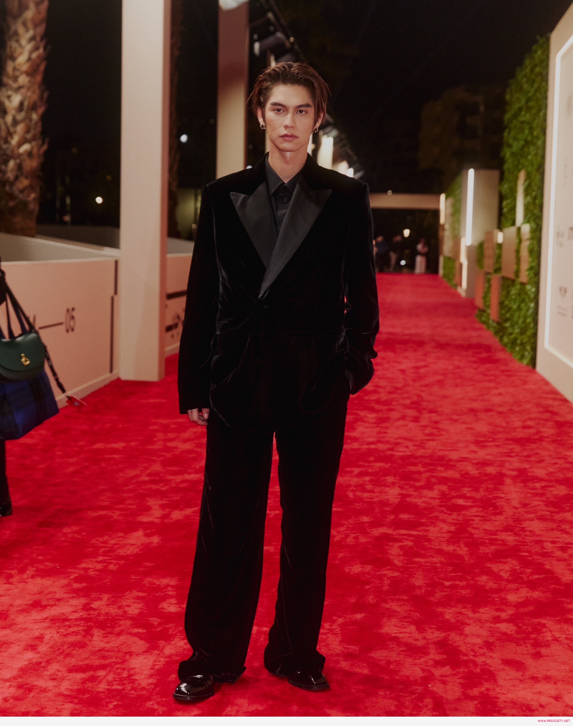 BRIGHT มาในลุค All Black ที่ถ่ายทอดความเรียบหรูได้อย่างสมบูรณ์แบบ โดยไบร์ทสวมลุคจาก Burberry ทั้งสองวัน สำหรับชุดแรกเป็นสูทผ้ากำมะหยี่สีดำจากคอลเลคชั่น Spring 25 และลุคของวันที่สองเป็นโทนสีขาวจากคอลเลคชั่น Summer 25 งานนี้เรียกความหล่อ และเสียงกรี๊ดจากแฟนๆ ได้เป็นอย่างดี