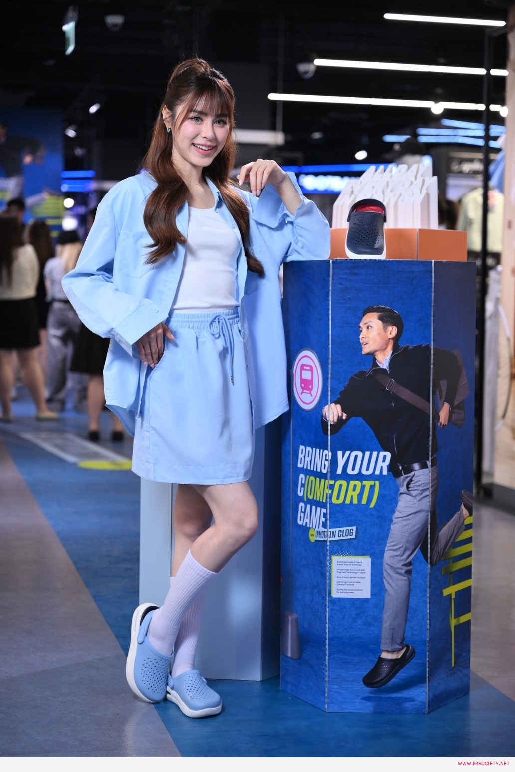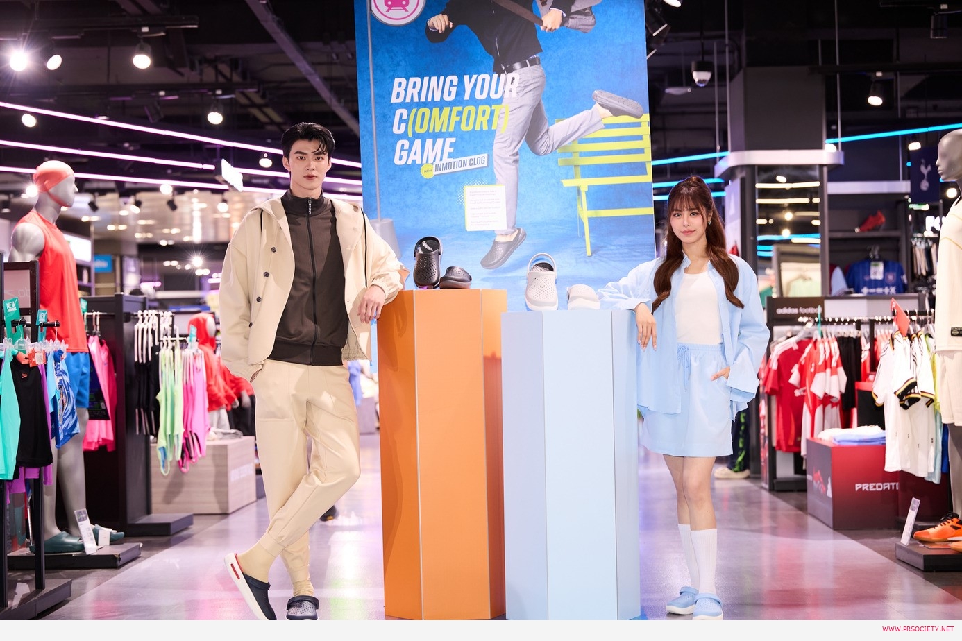 2 นักแสดงดาวรุ่ง มีน-นิชคุณ ขจรบริรักษ์ และ พีพี-ปุญญ์ปรีดี คุ้มพร้อม รอดสวาสดิ์ ตัวแทนคนรุ่นใหม่ไลฟ์สไตล์สุดแอคทีพ แท็กทีมเข้าร่วมงานเปิดตัว ‘Crocs InMotion’ (คร็อคส์ อินโมชัน) รองเท้าคอลเลกชันใหม่ล่าสุด โดย Crocs InMotion ถูกออกแบบมาเพื่อความสบายและคล่องตัว ด้วยนวัตกรรมเฉพาะอย่าง LiteRide™ แผ่นรองเท้าฟองน้ำระดับพรีเมียม และ Free Feel Technology™ ให้สัมผัสที่นุ่มและยืดหยุ่น ผสานเข้ากับดีไซน์สปอร์ต ได้ลุคที่เรียบง่ายเหมาะสำหรับชีวิตประจำวันและใส่หลังออกกำลังกาย เพื่อช่วยรองรับแรงกระแทก ของฝ่าเท้าได้ตรงจุด โดยมีให้เลือก 4 เฉดสี ได้แก่ Navy (สีกรม) Black (สีดำ) Atmosphere (สีเทา) และ Blue Calcite (สีฟ้าอ่อน) ณ ซูเปอร์สปอร์ต ชั้น 3 ศูนย์การค้าเซ็นทรัลเวิลด์