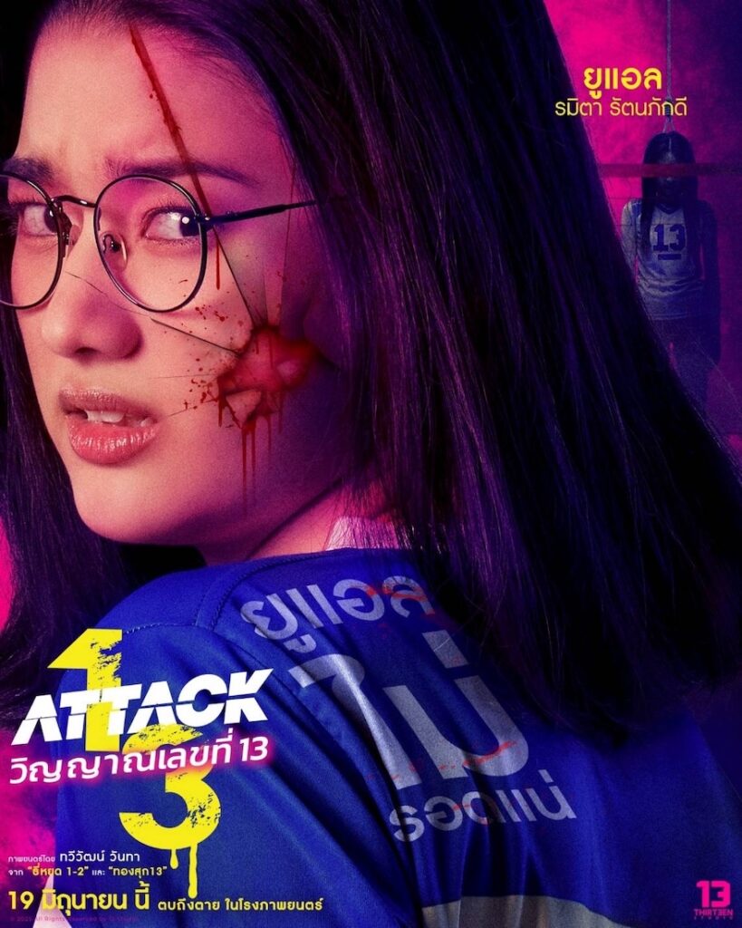 หลังก่อนหน้านี้ปล่อยโปสเตอร์คาแร็คเตอร์ของนักร้องสาวขวัญใจวัยรุ่น อ๊ะอาย-กรณิศ เล้าสุบินประเสริฐ ไปเมื่อวันก่อน ล่าสุดภาพยนตร์ “Attack วิญญาณเลขที่ 13” ผลงานประเดิมเรื่องแรกของค่าย 13 สตูดิโอ (เธอธีน สตูดิโอ) ปล่อยโปสเตอร์นักแสดงวัยรุ่นของเรื่องออกมาแบบรัว ๆ ได้แก่ เพิร์ธ-วีริณฐ์ศรา ตั้งกิจสุวานิช, สตางค์-ตริษา ปรีชาตั้งกิจ, ยูแอล-รมิตา รัตนภักดี และนักแสดงชายคนเดียวของเรื่อง แบงค์-ณฐวัฒน์ ธนทวีประเสริฐ โดยนักแสดงแต่ละคนล้วนผ่านการคัดสรรจากผู้กำกับมากฝีมือ คุ้ย-ทวีวัฒน์ วันทา