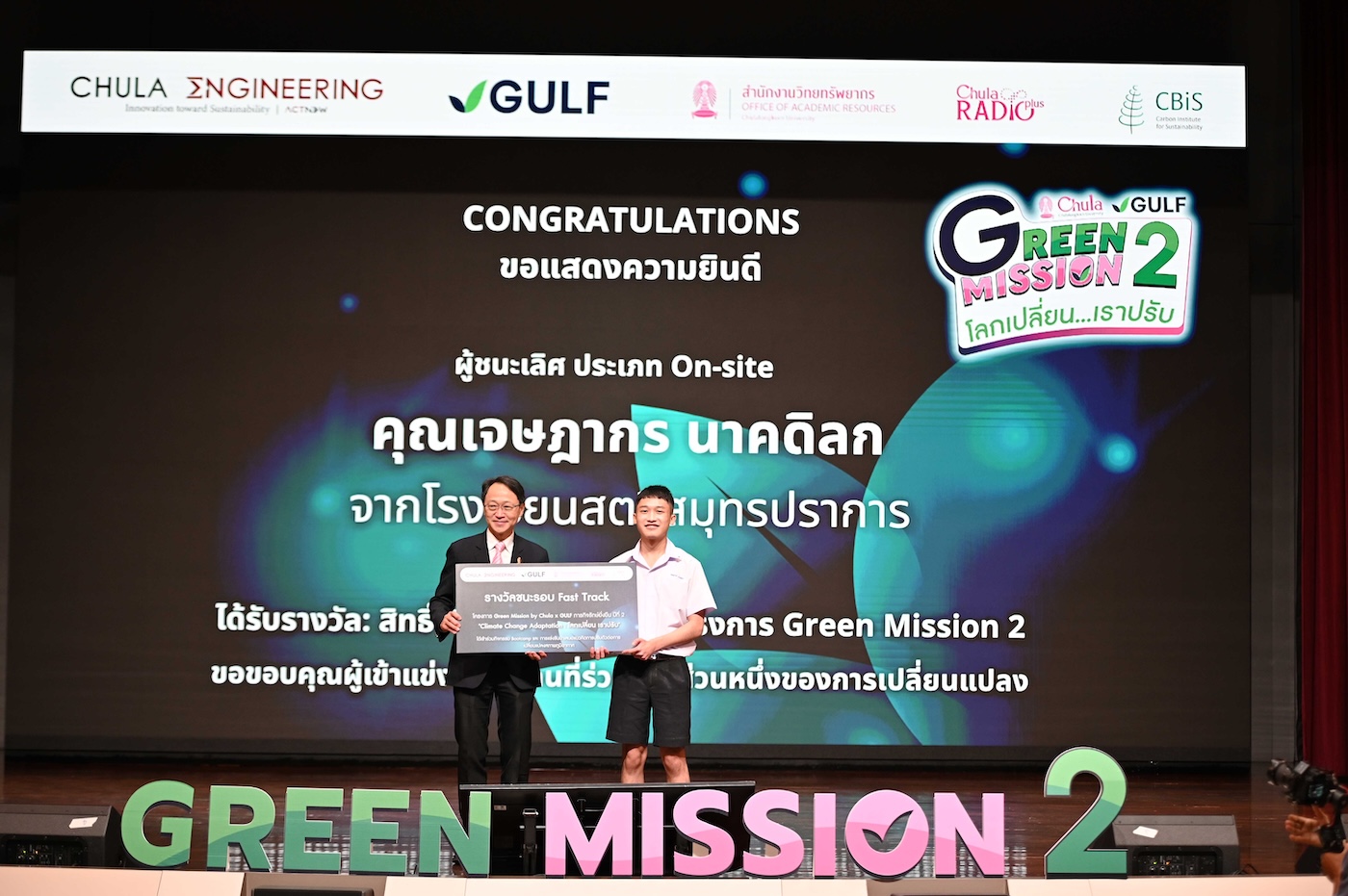 แถมงานนี้ยังได้แขกรับเชิญพิเศษ ซึ่งเป็นนิสิตวิศวกรรมศาสตร์อย่าง ไทย-ชญานนท์ ภาคฐิน สมาชิกวง BUS Because of you I shine มาร่วมแบ่งปันเรื่องราวและประสบการณ์เกี่ยวกับการรักษ์โลกและจุดประกายพลังให้กับน้อง ๆ ผู้เข้าร่วมงานอีกด้วย นอกจากนี้ ยังมีการแข่งขันรอบ Fast Track โดยผู้ที่ทำคะแนนสูงสุด 2 คน คือ นายเจษฎากร นาคดิลก จากโรงเรียนสตรีสมุทรปราการ และ นายภูรินท์ อินทุภูติ จากโรงเรียนมหาวชิราวุธ จังหวัดสงขลา ได้รับสิทธิ์เข้าร่วม Bootcamp 4 วัน 3 คืน ฟรี ณ ศูนย์เครือข่ายการเรียนรู้เพื่อภูมิภาค จุฬาลงกรณ์มหาวิทยาลัย จังหวัดสระบุรี ในรอบชิงชนะเลิศ ผู้เข้าแข่งขันจะต้องนำเสนอ แนวคิดนวัตกรรมที่ประยุกต์ใช้ได้จริง เพื่อตอบโจทย์การรับมือกับการเปลี่ยนแปลงสภาพภูมิอากาศ ทีมชนะเลิศจะได้รับเงินรางวัลและใบประกาศเกียรติคุณ พร้อมรางวัลพิเศษ Popular Vote by GULF สำหรับทีมขวัญใจโซเชียล รวมมูลค่ารางวัลกว่า 100,000 บาท