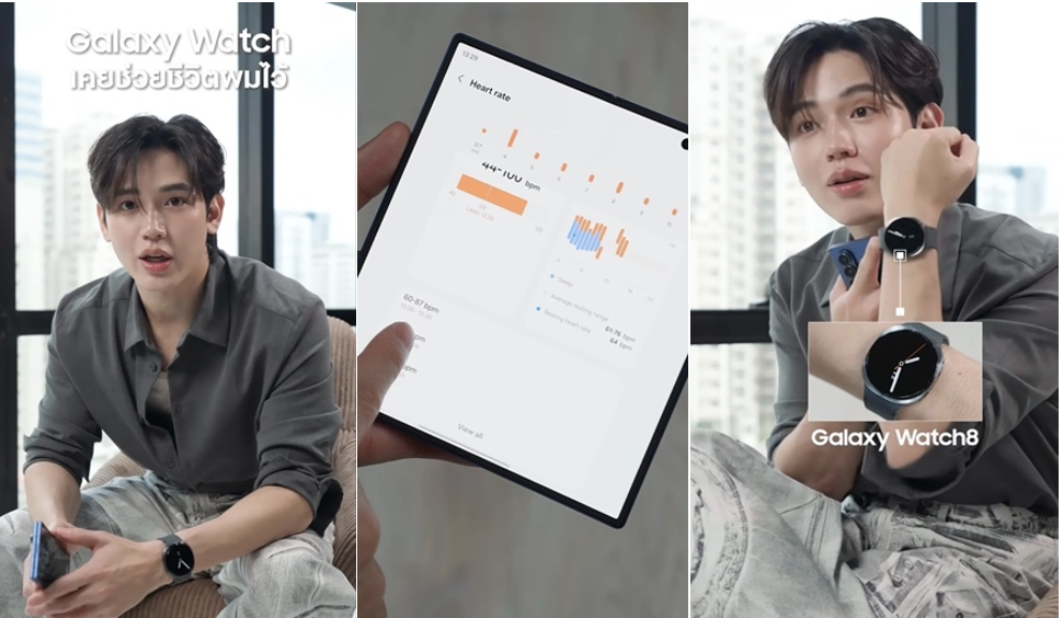 นิว-ฐิติภูมิ พูดถึงสมาร์ทวอทช์ว่าเป็นเป็นสิ่งสำคัญในชีวิต เล่าย้อนเหตุการณ์ก่อนจะเข้าทำการรักษากล้ามเนื้อหัวใจอักเสบจากไวรัส โดย Galaxy Watch ฟีเจอร์ Heart Rate Alert เข้ามาช่วยเตือนภัยสุขภาพ ให้รับรู้ถึงความผิดปกติของร่างกาย ทำให้หนุ่มนิวสามารถเข้าพบแพทย์ได้อย่างรวดเร็วและทันท่วงที