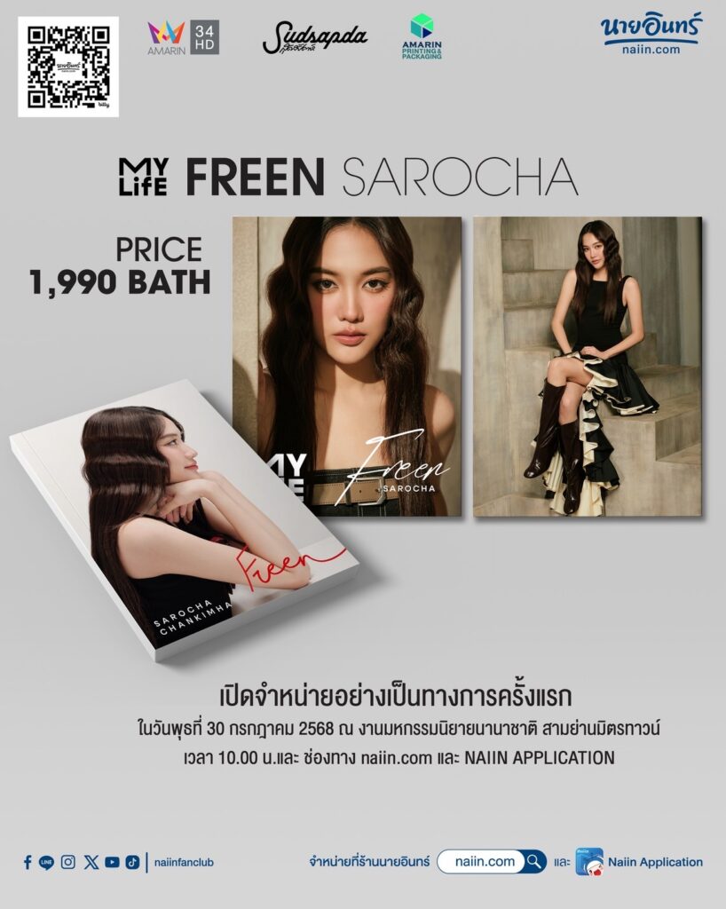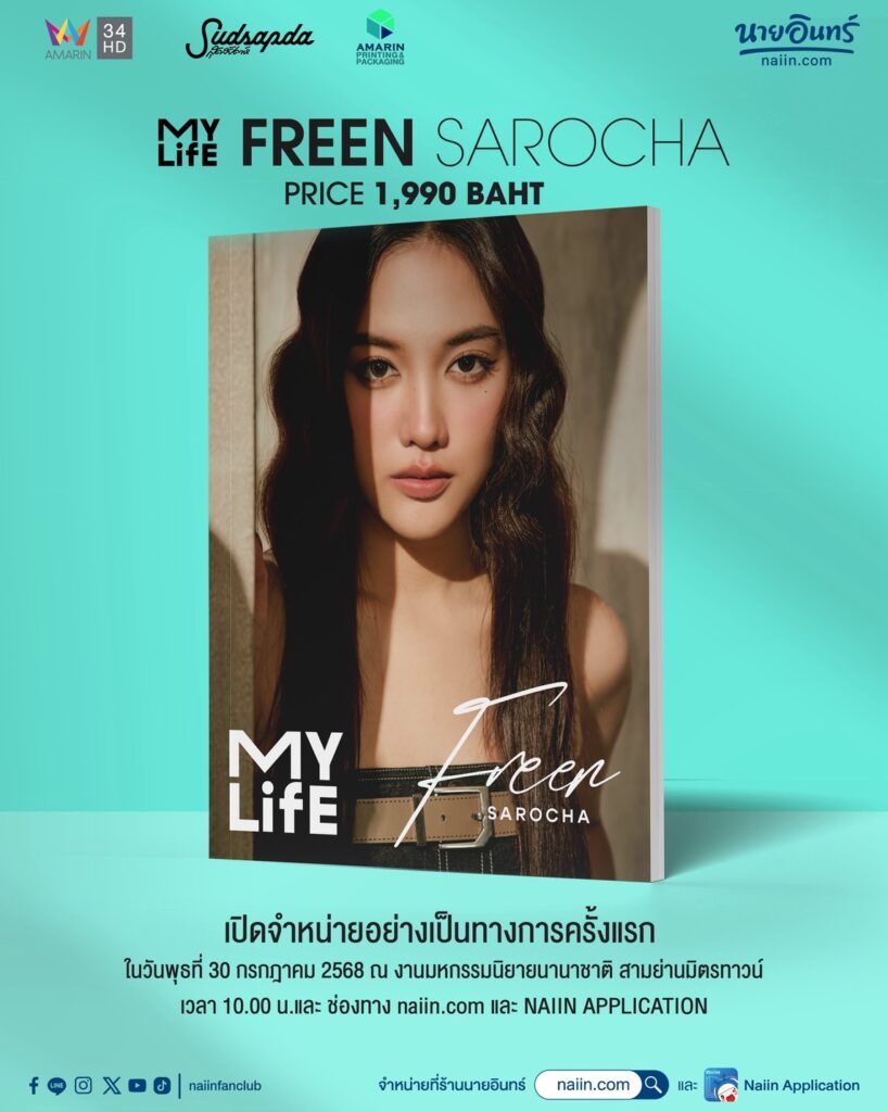 กำหนดการเปิดตัว PHOTOBOOK MY LIFE FREEN SAROCHA ในวันพุธที่ 30 กรกฎาคม 2568 สถานที่ งานมหกรรมนิยายนานาชาติ สามย่านมิตรทาวน์ ตั้งแต่เวลา 11.00 – 18.00 น.