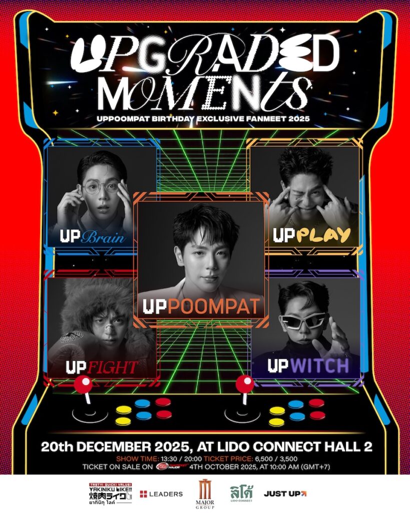 กดปุ่มออกสตาร์ทแล้วเตรียมตัวไปสนุกเอ็นจอยกันแบบอันลิมิต เมื่อศิลปินหนุ่มหล่อ “Uppoompat” (อัพ-ภูมิพัฒน์ เอี่ยมสำอาง) จากค่าย JustUp ขอเสิร์ฟความพิเศษชวนแฟนๆ มาร่วมฉลองครบรอบวันเกิดพร้อมสร้างเมจิกโมเมนต์ดีๆ ไปด้วยกันในงาน “Uppoompat Birthday Exclusive Fanmeet 2025 : Upgraded Moment” อัพเกรดความฟันแอนด์ฟินไปกับโชว์สุดเอ็กคลูซีฟที่เรียกว่าฟูลฟีลทุกโมเมนต์ กับการเรียงร้อยทุกห้วงเวลาของความบันเทิงผ่านธีมเกม Arcade ที่ทุกคนจะได้ย้อนวันวานไปสู่ยุคแห่งความสนุกสุดคลาสสิกไปพร้อมกับการชาร์จแบตเตอรี่หัวใจให้เต็มพลัง ท่ามกลางบรรยากาศของความสุขที่จะตกอารมณ์แฟนๆ ให้ได้ฟินเหนือคำบรรยาย ในวันเสาร์ที่ 20 ธันวาคม 2568 ณ Lido Connect Hall 2 กับ 2 รอบการแสดง เวลา 13.30 น. และ 20.00 น. โดยแฟนๆ เตรียมวอร์มนิ้วกดซื้อบัตรกันได้เลย แล้วมาร่วมกันเก็บเกี่ยวช่วงเวลาที่แสนพิเศษกับโมเมนต์สุดประทับใจไปพร้อมกัน
