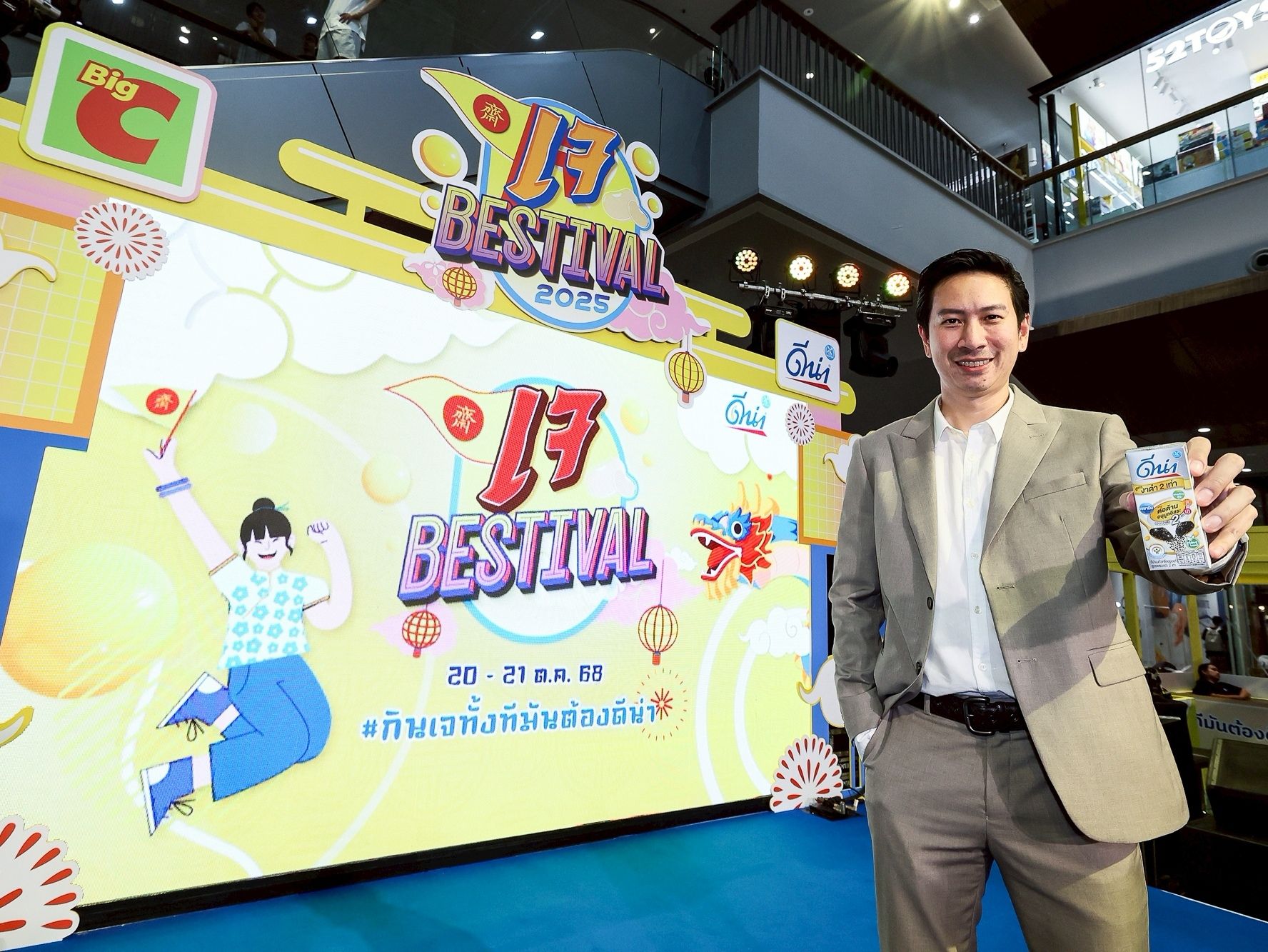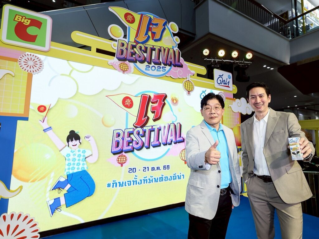 ภายในงานได้รับเกียรติจาก คุณภาสินี แซ่ตั้ง Senior Vice President Dryfood บริษัท บิ๊กซี ซูเปอร์เซ็นเตอร์ จำกัด (มหาชน) และ คุณสุรชัย จิระมงคลศิริ ผู้อำนวยการฝ่ายขายโมเดิร์นเทรด บริษัท ดัชมิลล์ จำกัด ร่วมเปิดงานเจ BESTIVAL 2025 กินเจทั้งทีมันต้องดีน่า