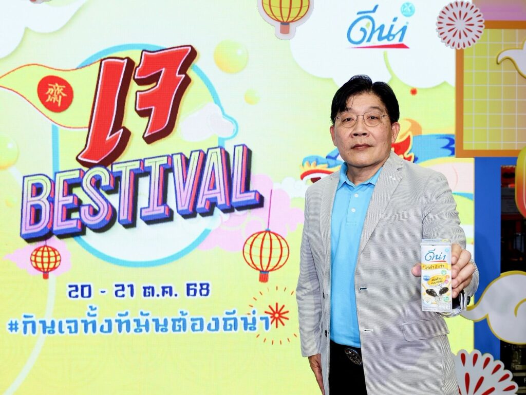คุณจิตรภณ ไตรรัตน์วรวุฒิ ผู้จัดการฝ่ายการตลาดกลุมผลิตภัณฑ์นมถั่วเหลืองดีน่า บริษัท แดรี่พลัส จำกัด ในกลุ่มบริษัทดัชมิลล์ ให้สัมภาษณ์เพิ่มเติมว่า “ผลิตภัณฑ์ดีน่า ของเราเป็นผลิตภัณฑ์นมถั่วเหลืองผสมธัญพืช ในฐานะที่เราเป็นผลิตภัณฑ์เจ ในทุกๆ สูตร อีกทั้งยังเป็นผลิตภัณฑ์ที่ได้รับการการันตี สินค้าทางเลือกเพื่อสุข_ภาพ เราจึงให้ความสำคัญกับเทศการกินเจ เป็นประจำในทุกๆ ปี ซึ่งในปีนี้เราก็ได้สนับสนุนเทศกาลกินเจในหลากหลายพื้นที่ทั่วประเทศและหนึ่งในนั้นคืองานวันนี้ กับ กิจกรรม เจ BESTIVAL 2025 กินเจทั้งทีมันต้องดีน่า ภายในงานรวมไลฟ์สไตล์การกินเจมาให้ครบครัน ทั้งบูธอาหารเจ เมนูอาหารเจจากนมถั่วเหลืองดีน่า การคอลแลปกับแบรนด์อื่นๆ ที่รังสรรค์เมนูเจตลอดเทศกาลเจปีนี้ อีกทั้งเอาใจสายมูด้วยการสักการะเทพเจ้า และซุ้มดูดวงจากสมาคมโหรแห่งประเทศไทยฯ และโปรโมชั่นพิเศษภายในงาน ซื้อนมถั่วเหลืองดีน่า ก็จะได้เล่นกิจกรรมเพื่อรับของรางวัลมากมาย นอกจากนี้ยังเอาใจสายเอ็นเตอร์เทรนด้วยโชว์พิเศษจากศิลปินทั้งสองวัน กับ วงPROXIE และ จูเนียร์ มาร์ค จาก GMM ที่มาสร้างความสนุกสนาน และความบันเทิงภายในงาน