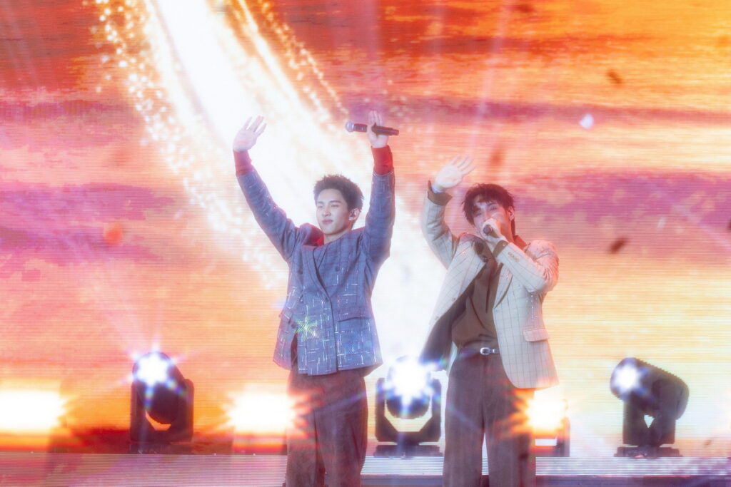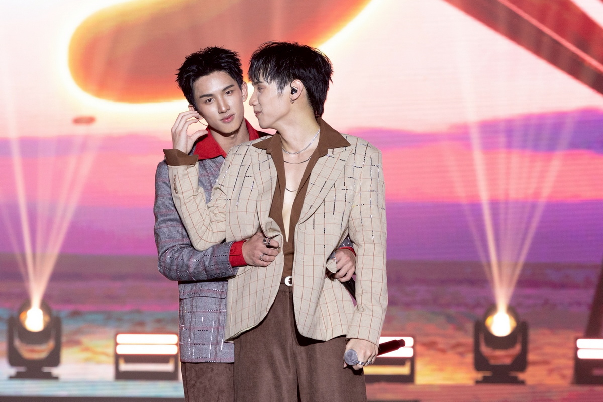 จากนั้นพิธีกรหนุ่มอารมณ์ดี “เลโอ โซสเซย์” ที่วันนี้ขอรับบทเป็นคุณลุงชาวประมงให้เข้ากับบรรยากาศ ขึ้นเวทีชวนสองหนุ่ม “เซิร์ฟ-จาว่า” พูดคุย พร้อมเปิดตัวมาสคอตคู่ใจน้อง “Rexxa” ไดโนเสาร์ตัวสีเขียวที่สื่อถึง “จาว่า” ส่วนหนามด้านหลังที่มี ลักษณะคล้าย เซิร์ฟบอร์ดสื่อถึง “เซิร์ฟ” บวกกับความแสบซ่า น่ารักซุกซน ก็ทำเอาแฟนๆ เอ็นดูจนโดนตกไปตามๆ กัน ต่อด้วยการพูดคุยทำความรู้จักตัวตนและสายสัมพันธ์ของ “เซิร์ฟ-จาว่า” แบบแบบเอ็กซ์คลูชีฟ แล้วก็ไปต่อกับ 2 หนุ่ม โชว์แร็พไฟแล่บกับเพลง “Slow Motion, โคโยตี้” มาถึงพาร์ทสุดท้าย Sunrise Glow “เซิร์ฟ-จาว่า” ตอกย้ำความสัมพันธ์สุดมหัศจรรย์ที่จะจับมือกันเดินไปอย่างมั่นคงผ่านเพลง “เข้าแล้วห้ามออก” จากนั้น “เซิร์ฟ-จาว่า” กล่าวขอบคุณพร้อมน้ำตาด้วยความซาบซึ้งว่า“ก่อนอื่นขอบคุณ GMMTV ที่ให้โอกาสได้ทำในสิ่งที่ไม่คิดว่าจะได้ทำ ซึ่งเป็นความฝันของพวกเรา ขอบคุณพ่อแม่และครอบครัว ขอบคุณทีมงานทุกคนที่มีส่วนในงานนี้ และขอบคุณพาร์ทเนอร์ที่ดีที่เข้าใจและรับฟัง ขอให้อยู่ด้วยกันไปนานๆ และยืนยันว่า ถ้ามีแฟนๆ อยู่ตรงนี้ พวกเราก็จะจับมือเดินไปด้วยกันตลอดทางอย่างแน่นอน และที่ขาดไม่ได้เลยขอบคุณแฟนๆ ทุกคนที่รักพวกเรา และซัพพอร์ตพวกเราตั้งแต่วันแรกๆ ถ้าไม่มีพวกคุณทุกคน ก็ไม่มีพวกเราในวันนี้ ยังไงก็อยู่เป็นกำลังใจให้กันไปนานๆ นะครับ” และทั้งคู่ก็ปิดท้ายส่งแฟนๆ ทุกคนกลับบ้านด้วยเพลง “มากกว่าที่รัก” เรียกเสียงกรี๊ดดังสนั่นฮอลล์ ทำเอาแฟนๆ อิ่มเอมใจเก็บเป็น ความทรงจำแรกร่วมกันตลอดไป